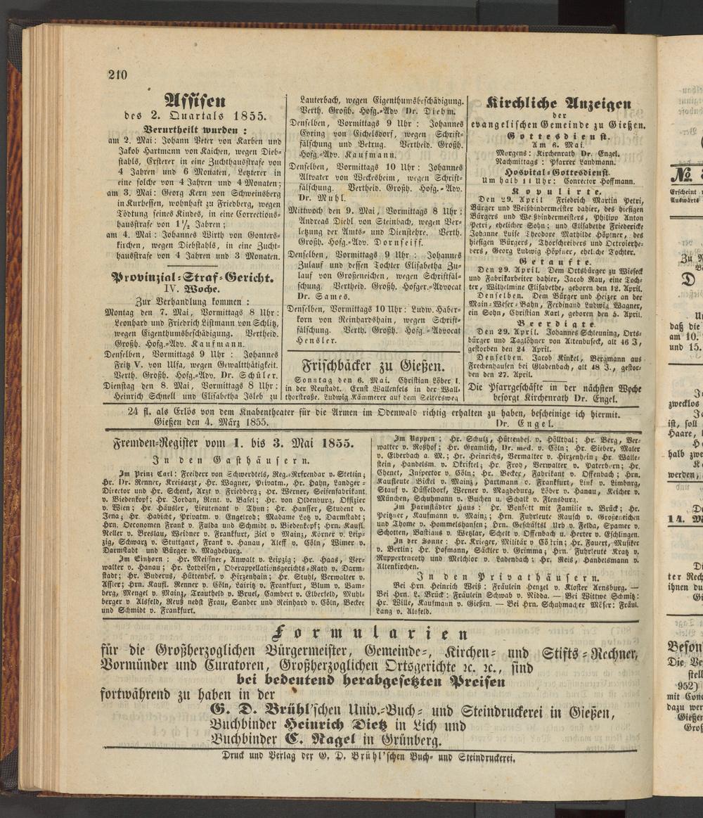 Anzeigeblatt für die Provinzialhauptstadt Gießen. 1840-1867