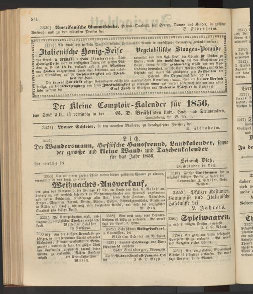Anzeigeblatt für die Provinzialhauptstadt Gießen. 1840-1867