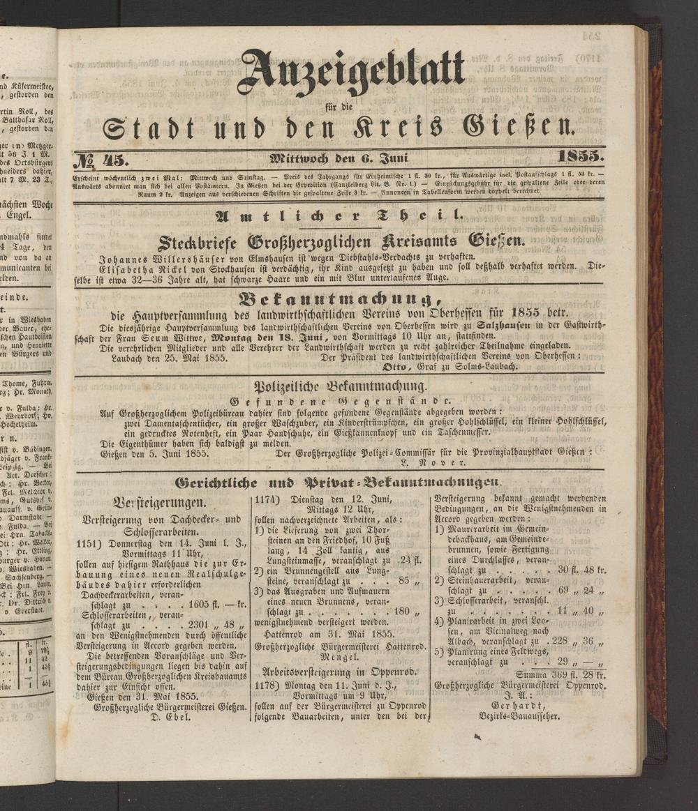 Anzeigeblatt für die Provinzialhauptstadt Gießen. 1840-1867