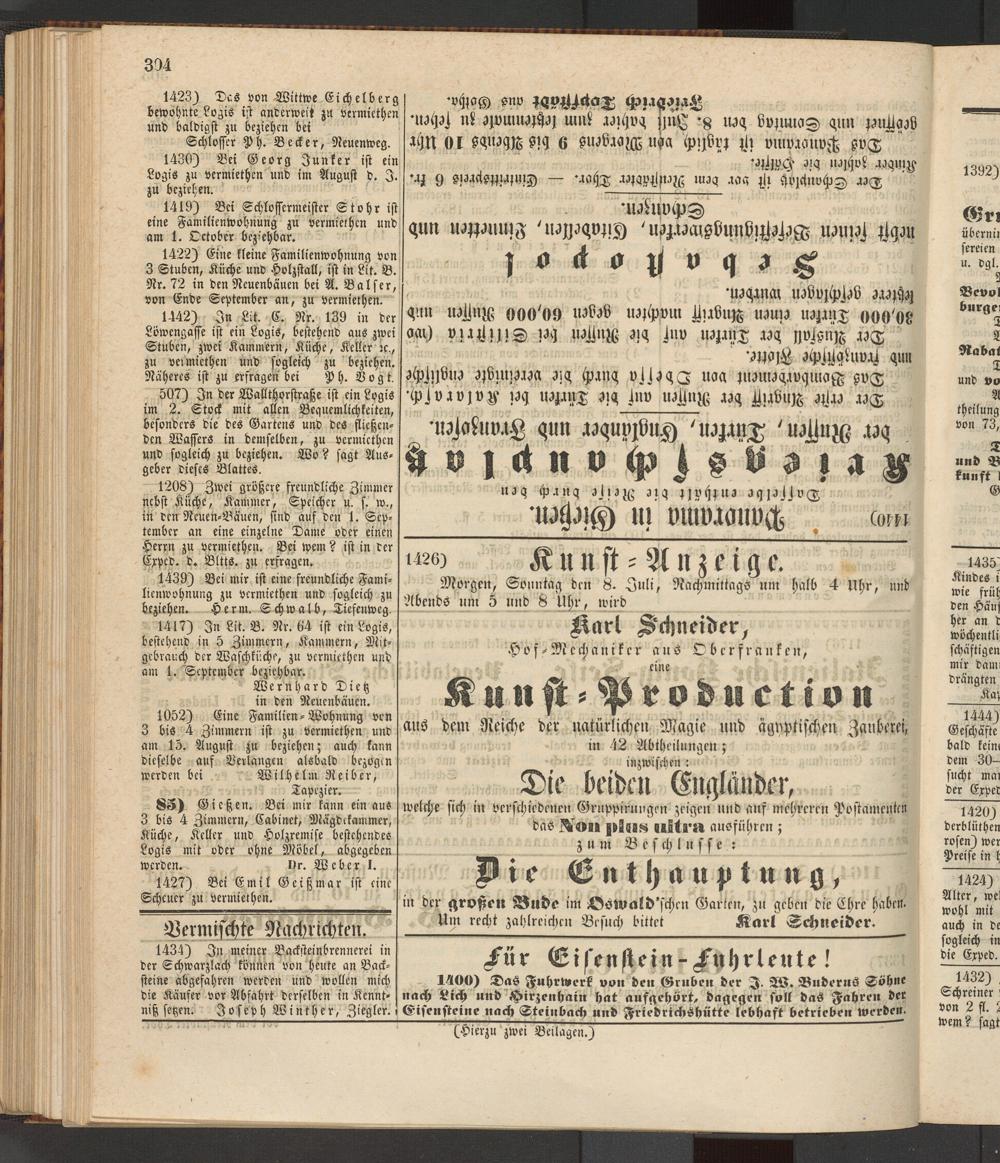 Anzeigeblatt für die Provinzialhauptstadt Gießen. 1840-1867