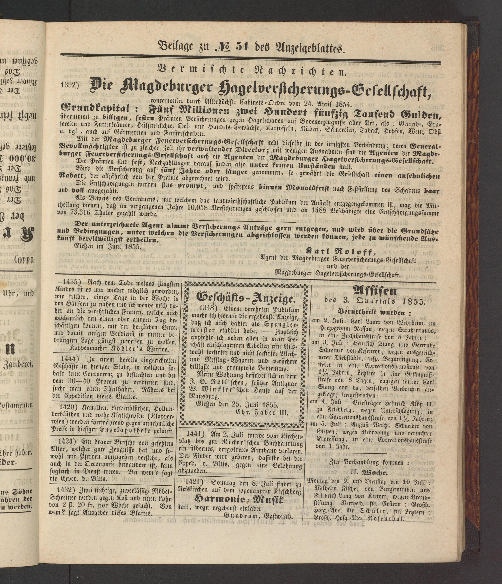 Anzeigeblatt für die Provinzialhauptstadt Gießen. 1840-1867