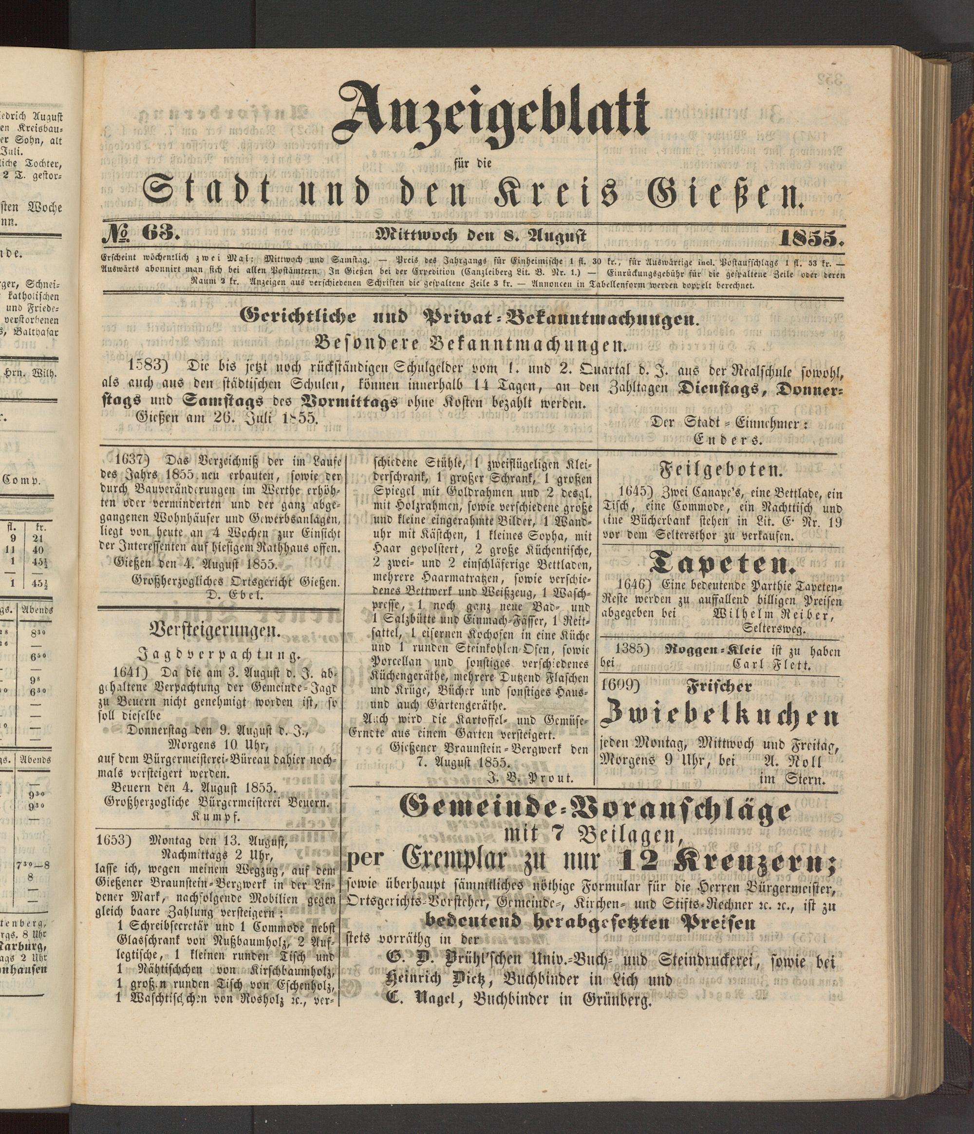 Anzeigeblatt für die Provinzialhauptstadt Gießen. 1840-1867