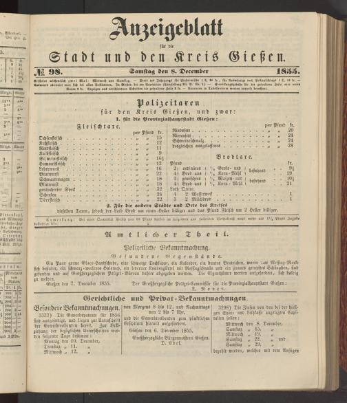 Anzeigeblatt für die Provinzialhauptstadt Gießen. 1840-1867