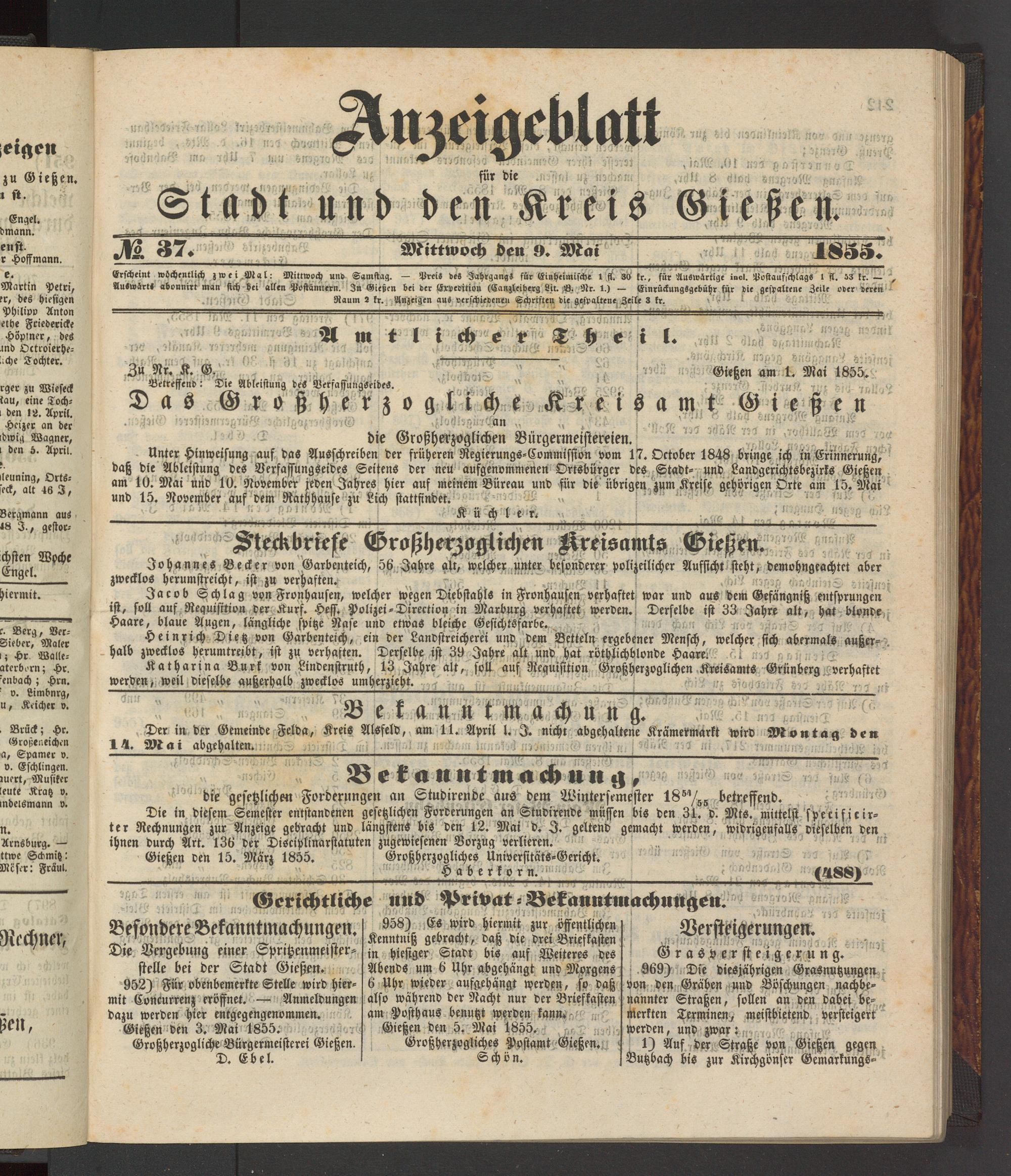 Anzeigeblatt für die Provinzialhauptstadt Gießen. 1840-1867