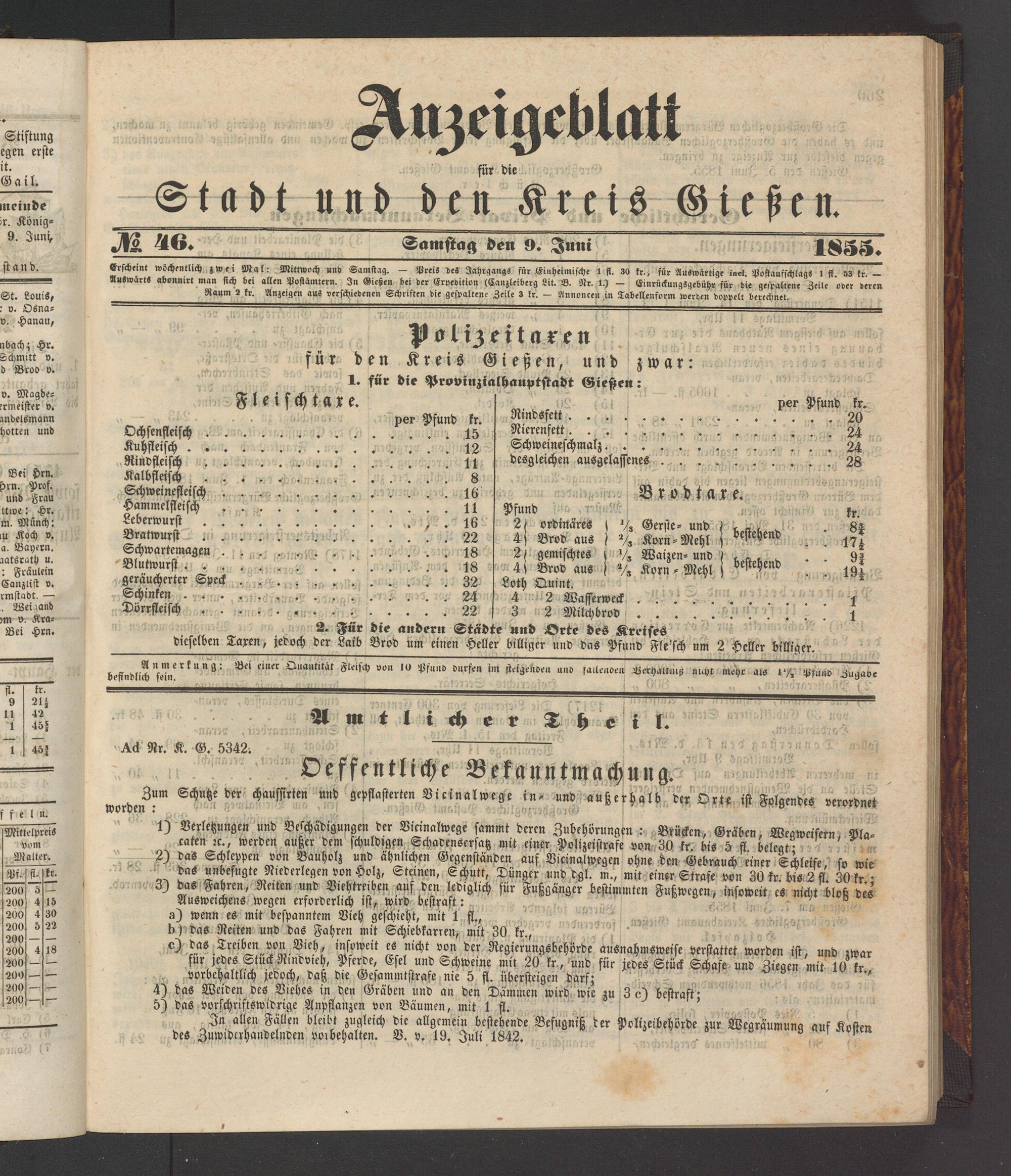 Anzeigeblatt für die Provinzialhauptstadt Gießen. 1840-1867