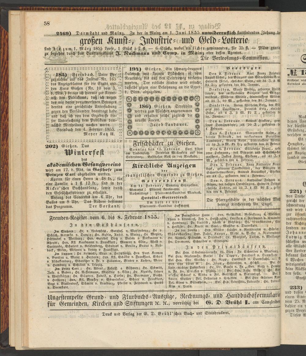 Anzeigeblatt für die Provinzialhauptstadt Gießen. 1840-1867