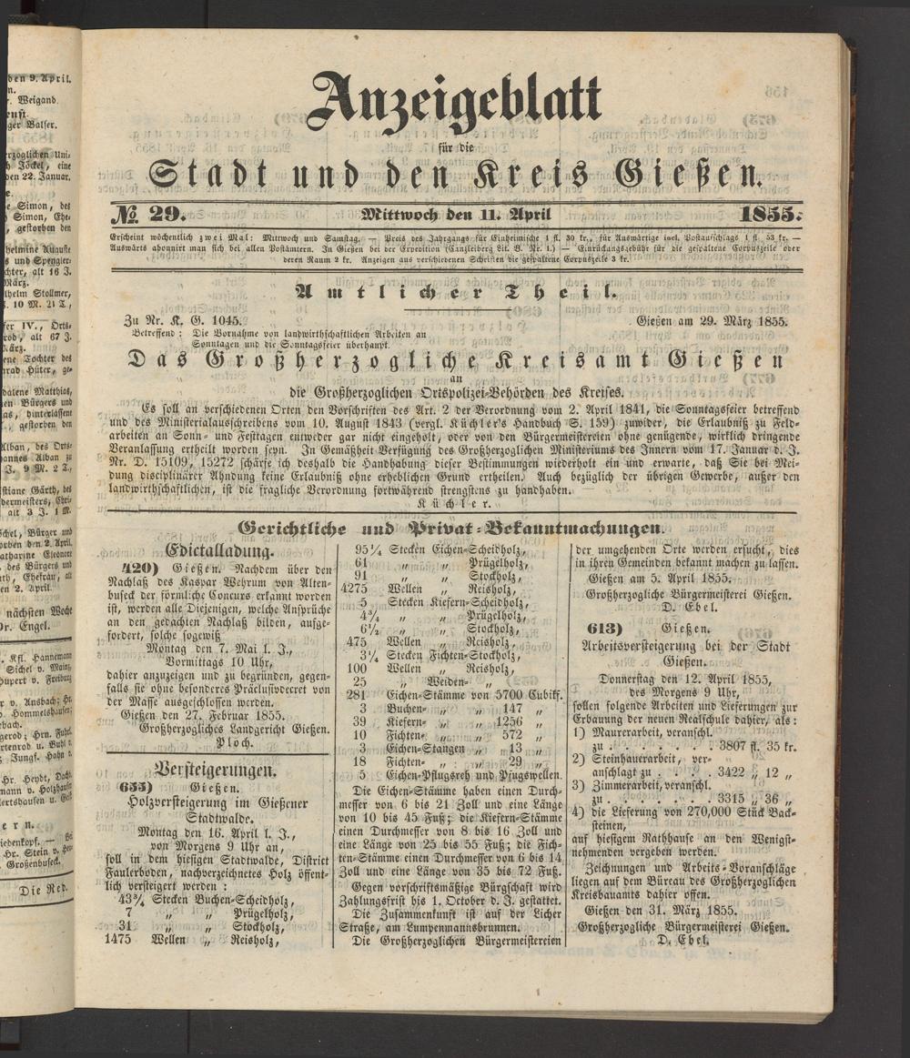Anzeigeblatt für die Provinzialhauptstadt Gießen. 1840-1867
