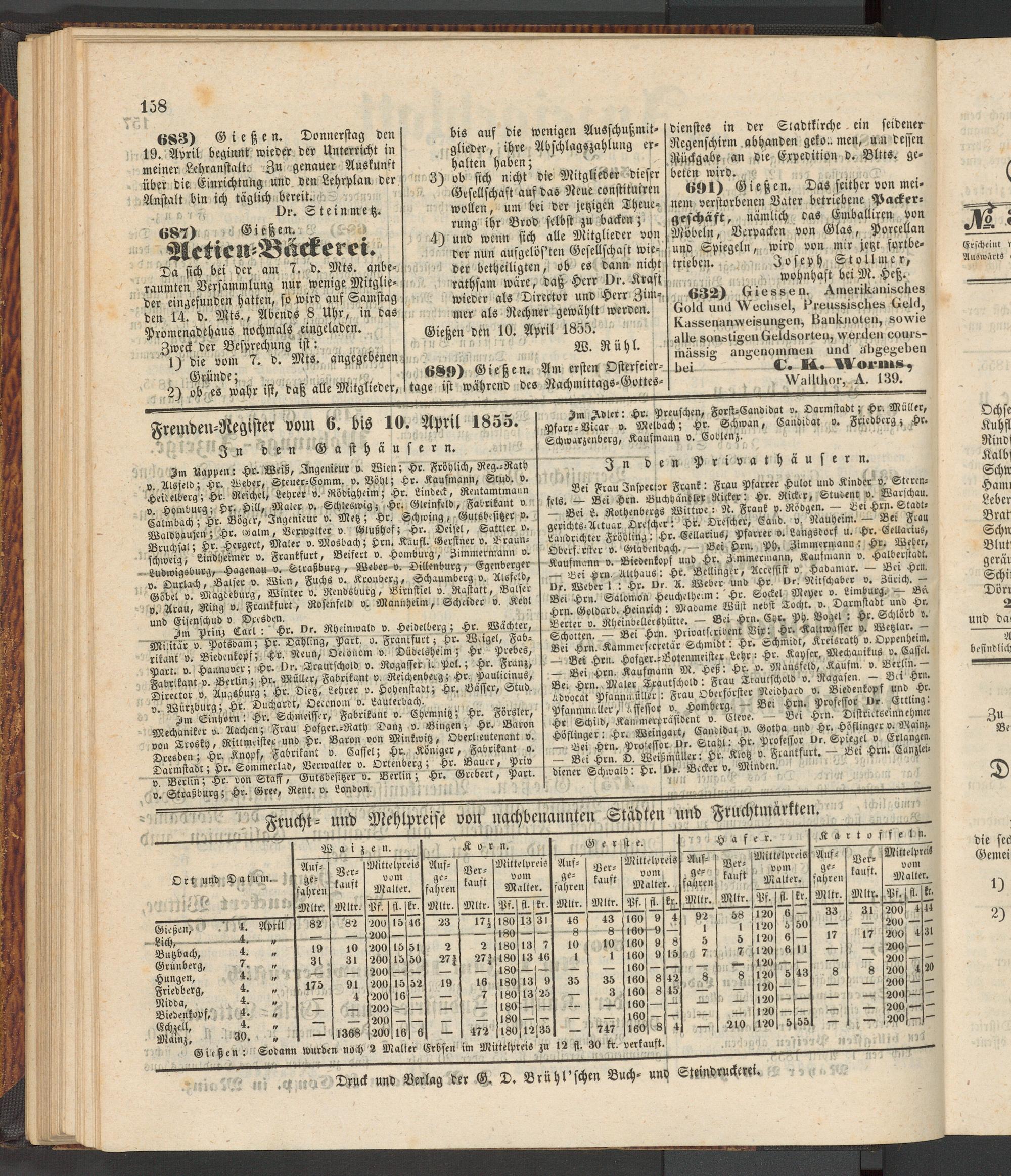Anzeigeblatt für die Provinzialhauptstadt Gießen. 1840-1867