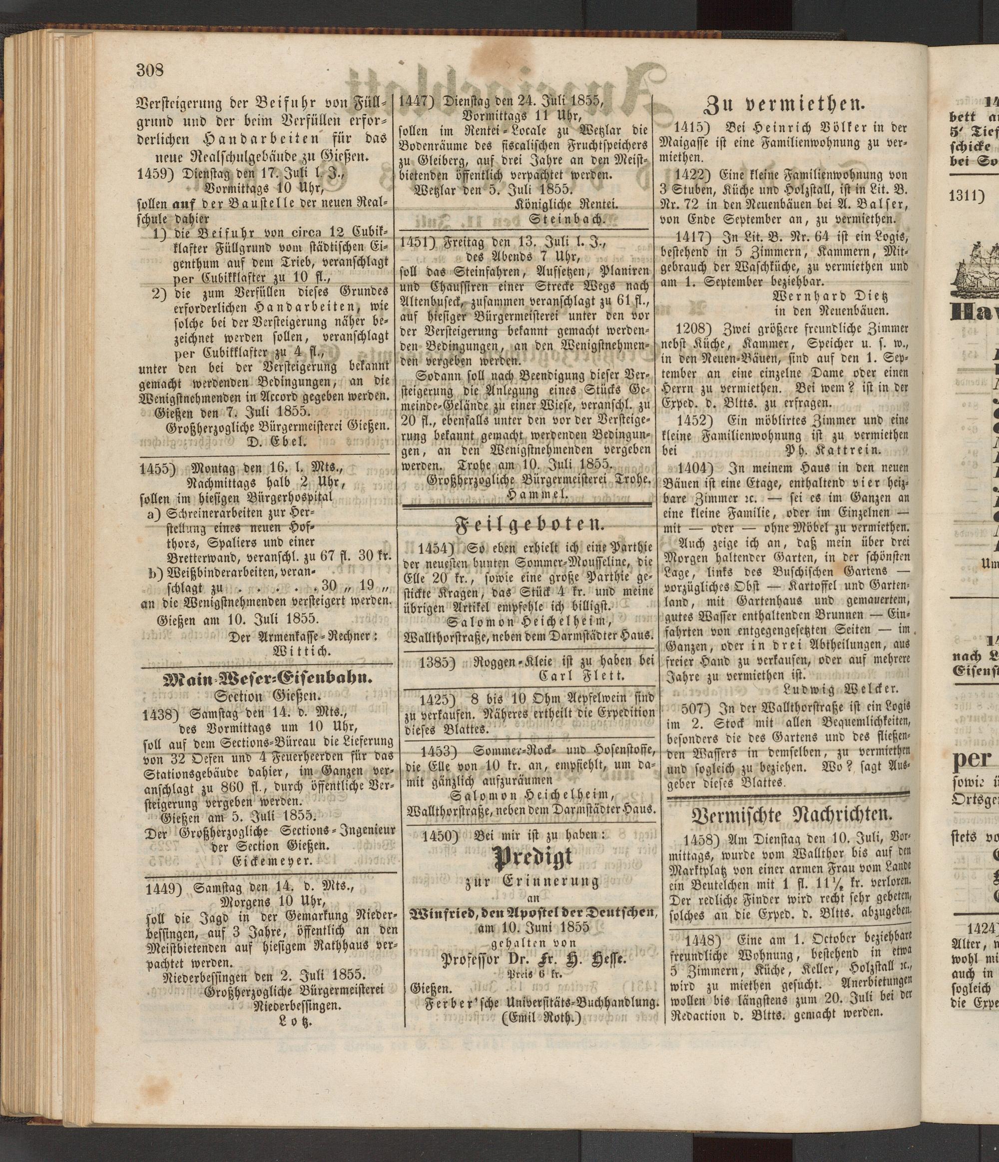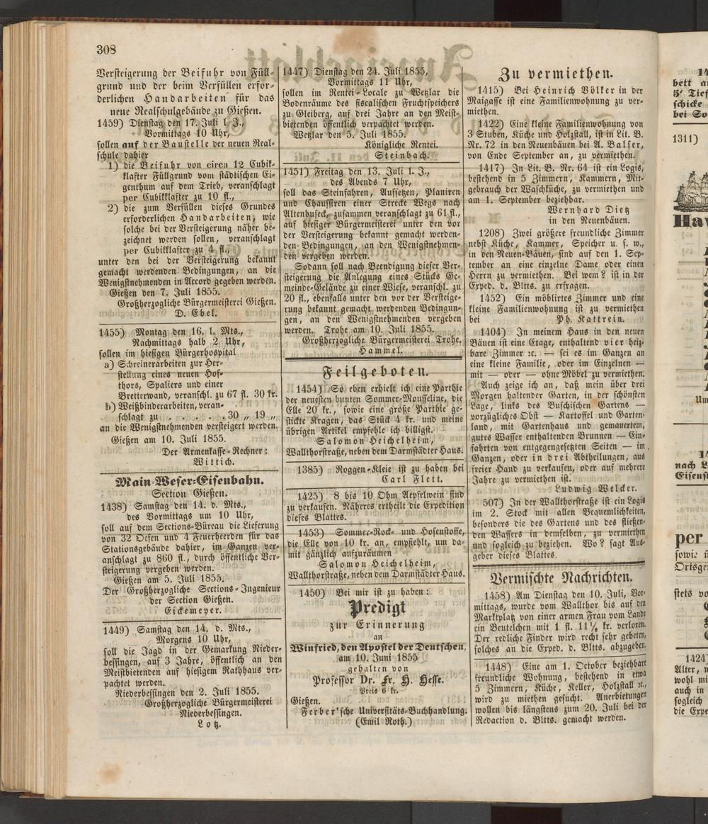 Anzeigeblatt für die Provinzialhauptstadt Gießen. 1840-1867
