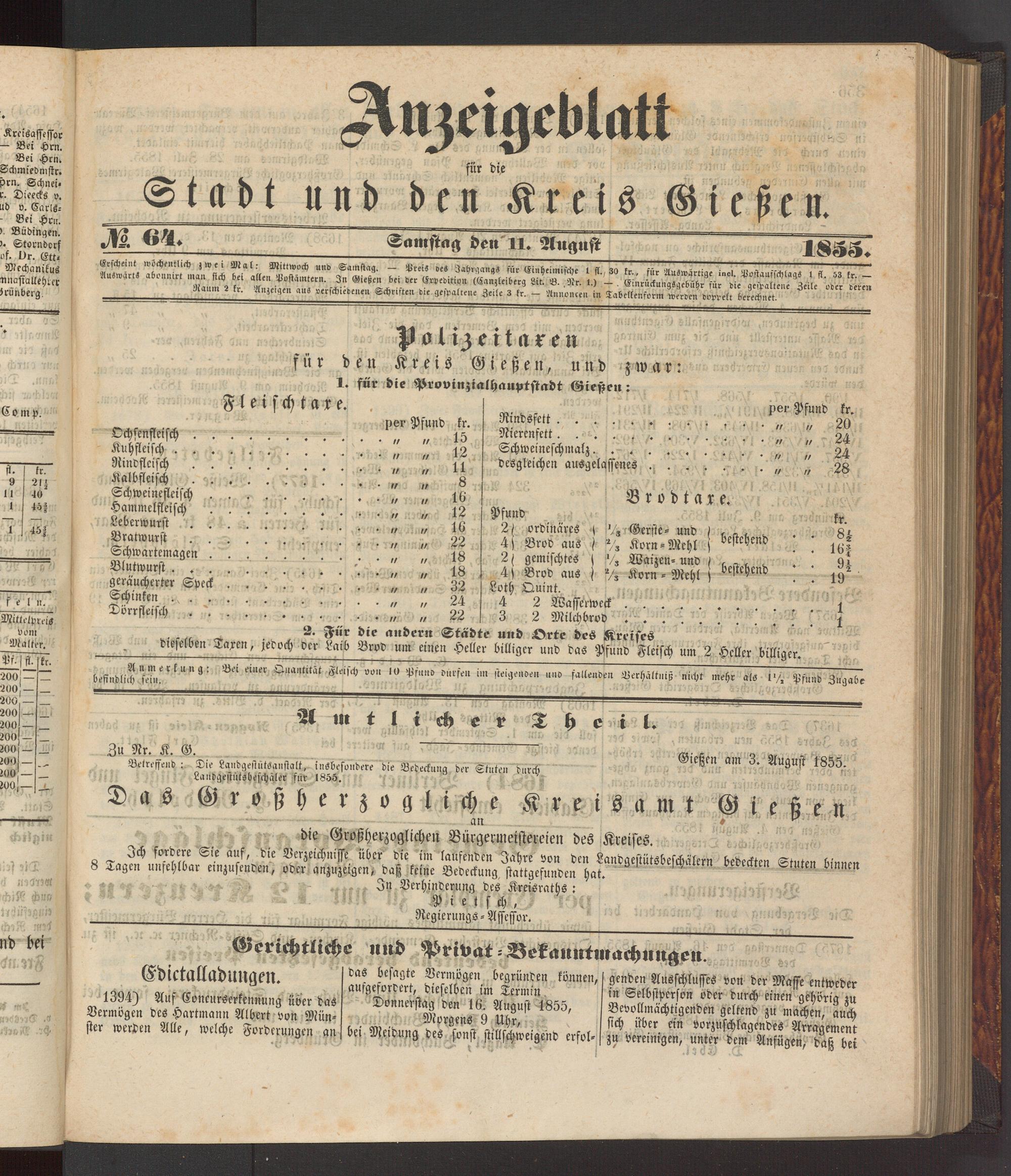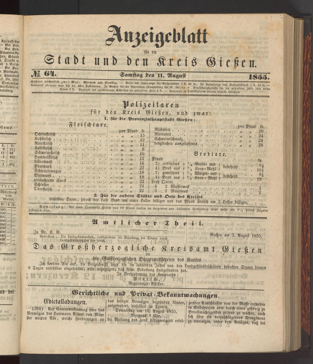 Anzeigeblatt für die Provinzialhauptstadt Gießen. 1840-1867