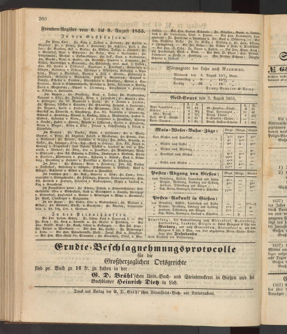 Anzeigeblatt für die Provinzialhauptstadt Gießen. 1840-1867