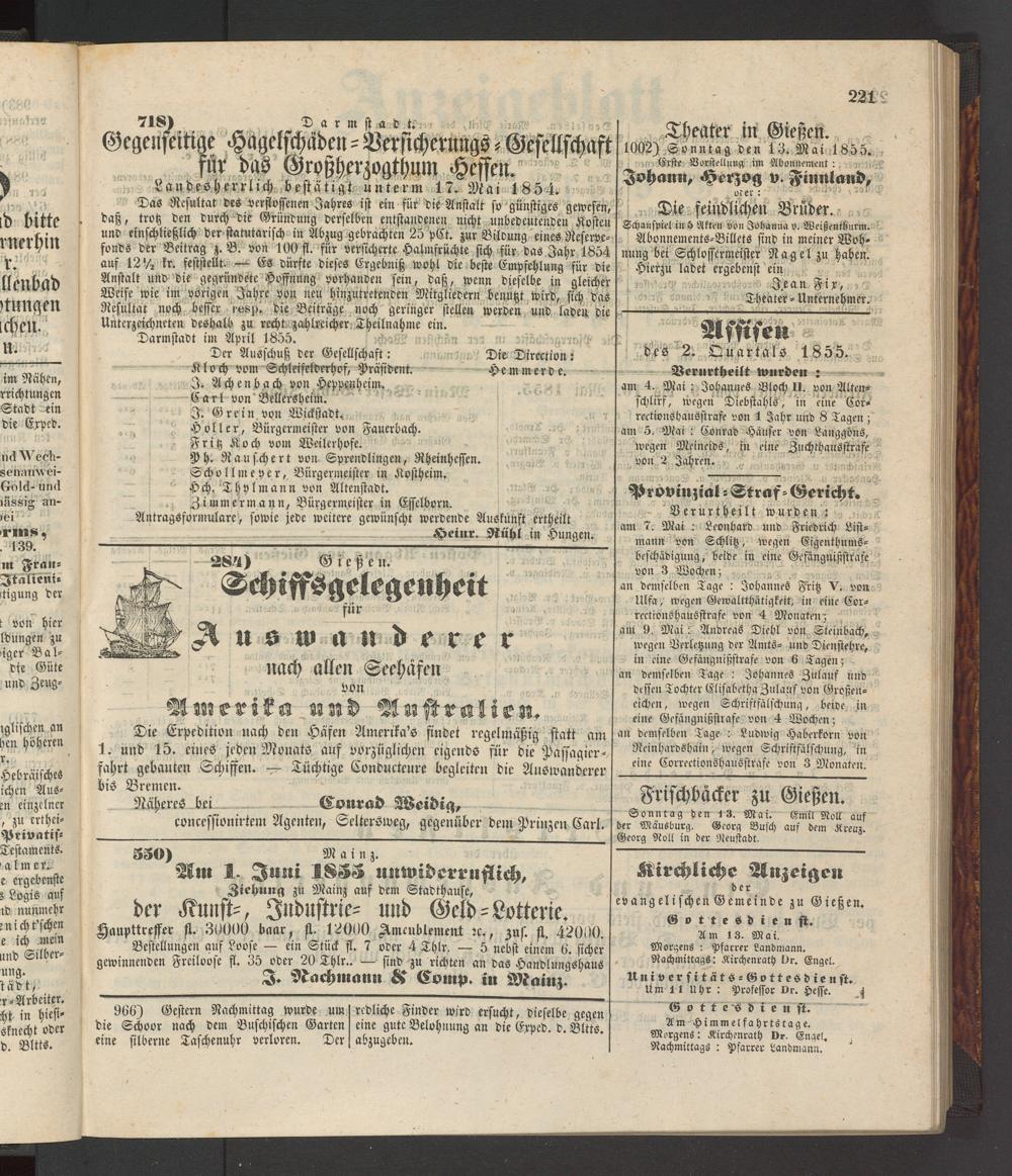 Anzeigeblatt für die Provinzialhauptstadt Gießen. 1840-1867