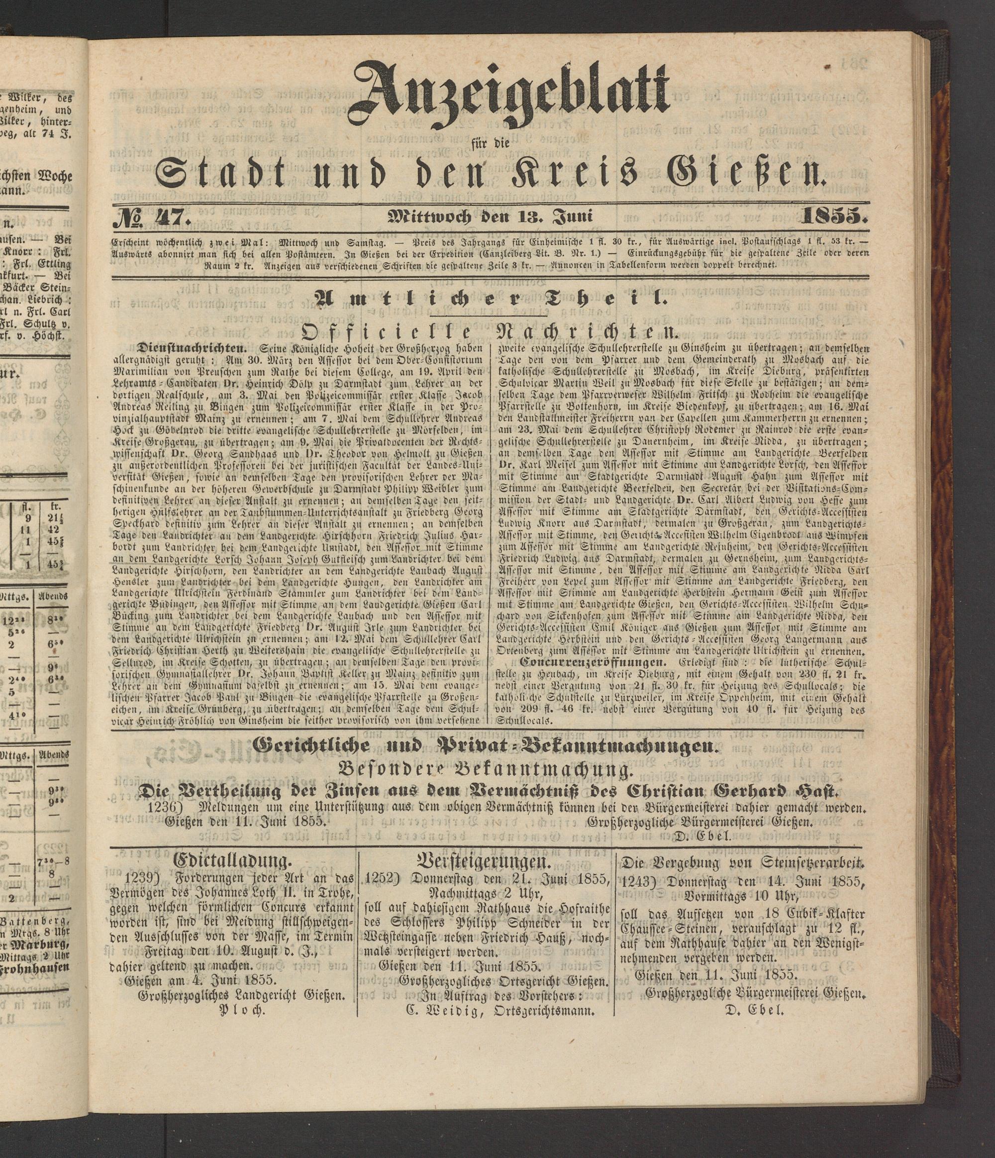 Anzeigeblatt für die Provinzialhauptstadt Gießen. 1840-1867