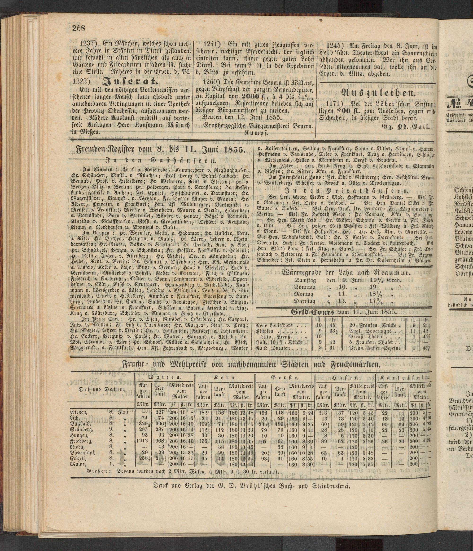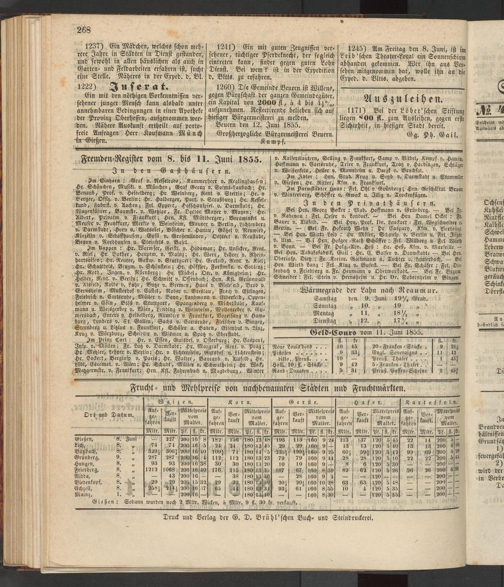 Anzeigeblatt für die Provinzialhauptstadt Gießen. 1840-1867