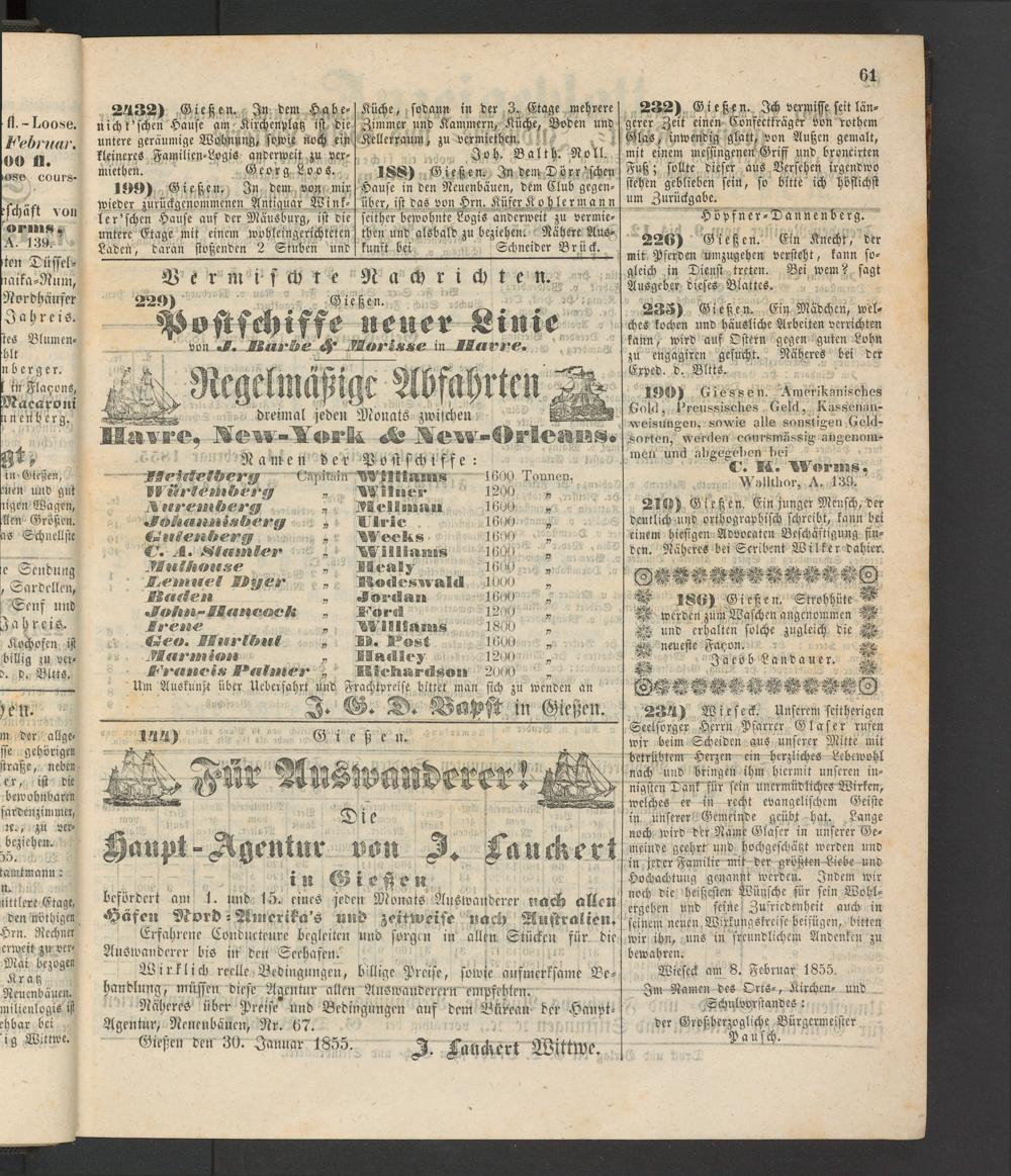 Anzeigeblatt für die Provinzialhauptstadt Gießen. 1840-1867