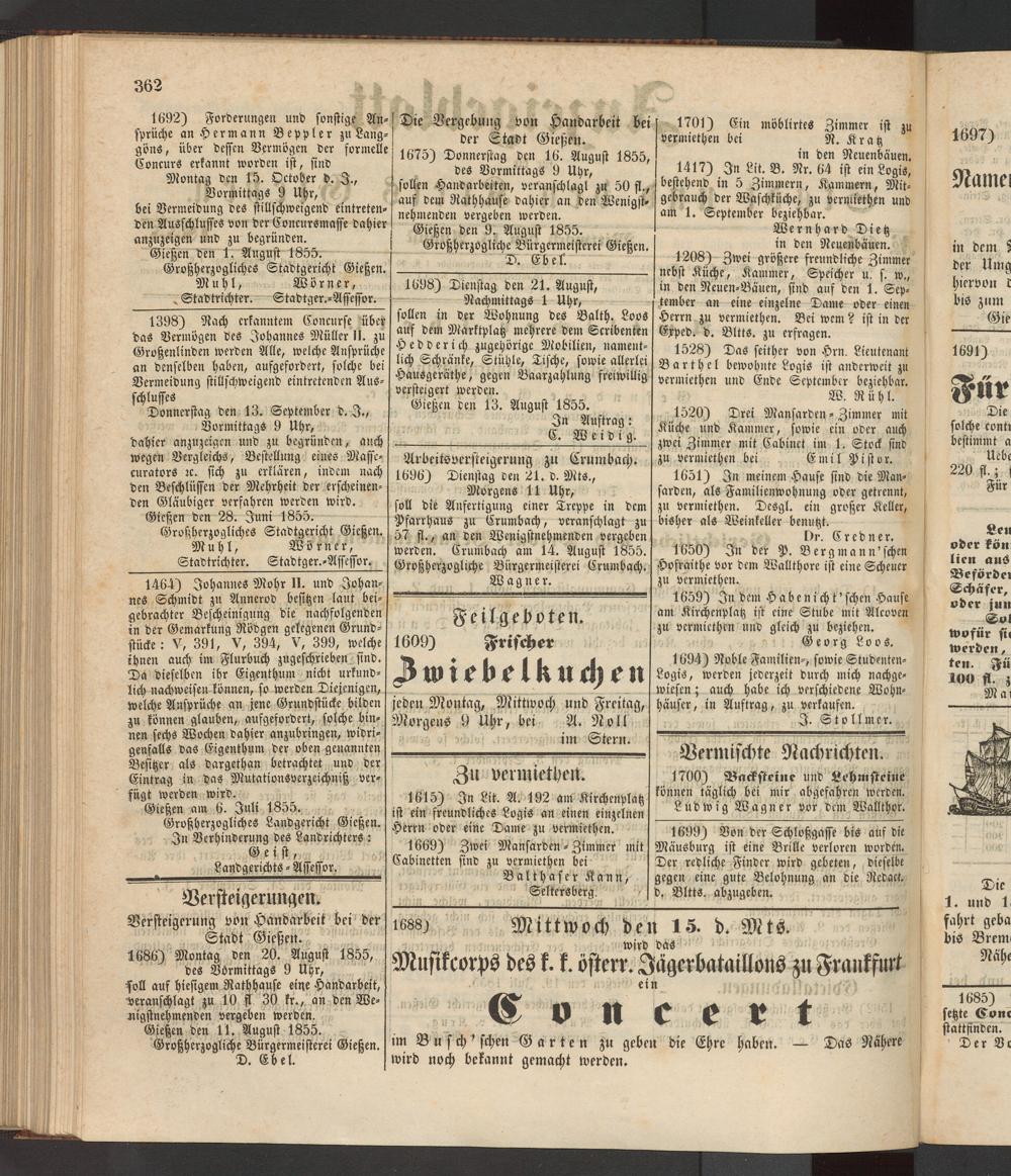 Anzeigeblatt für die Provinzialhauptstadt Gießen. 1840-1867