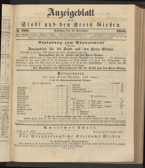 Anzeigeblatt für die Provinzialhauptstadt Gießen. 1840-1867
