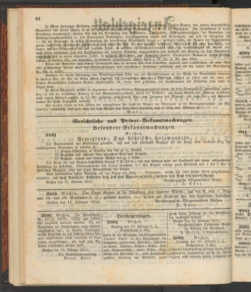 Anzeigeblatt für die Provinzialhauptstadt Gießen. 1840-1867