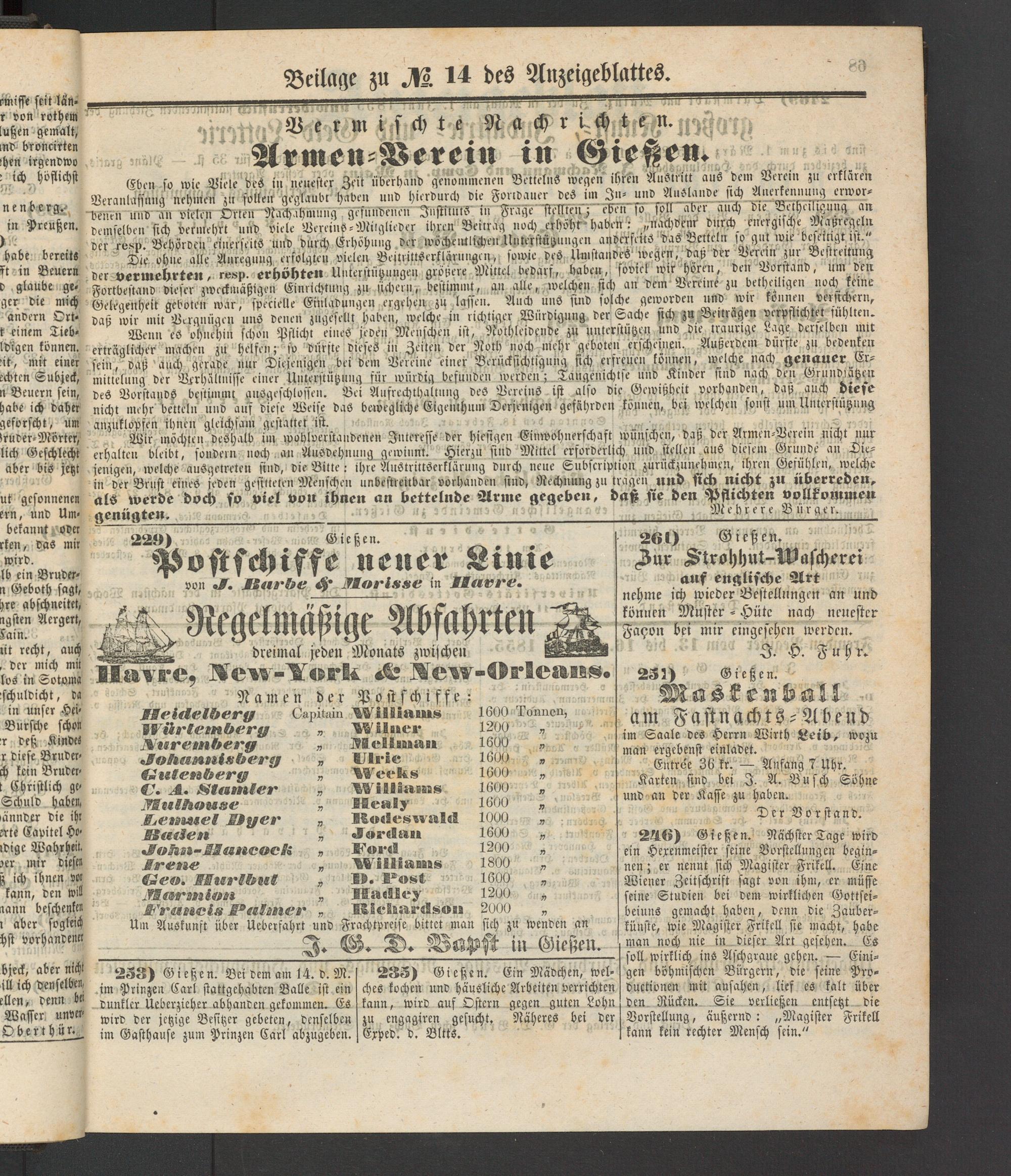 Anzeigeblatt für die Provinzialhauptstadt Gießen. 1840-1867