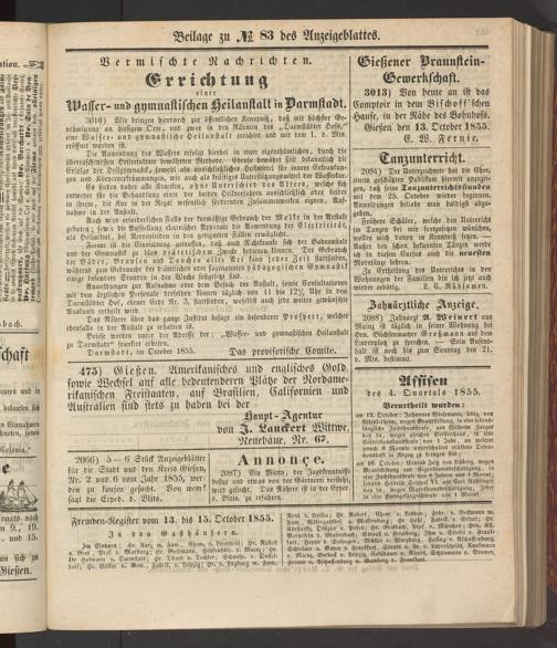 Anzeigeblatt für die Provinzialhauptstadt Gießen. 1840-1867
