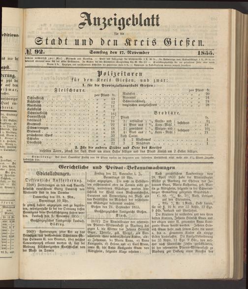 Anzeigeblatt für die Provinzialhauptstadt Gießen. 1840-1867