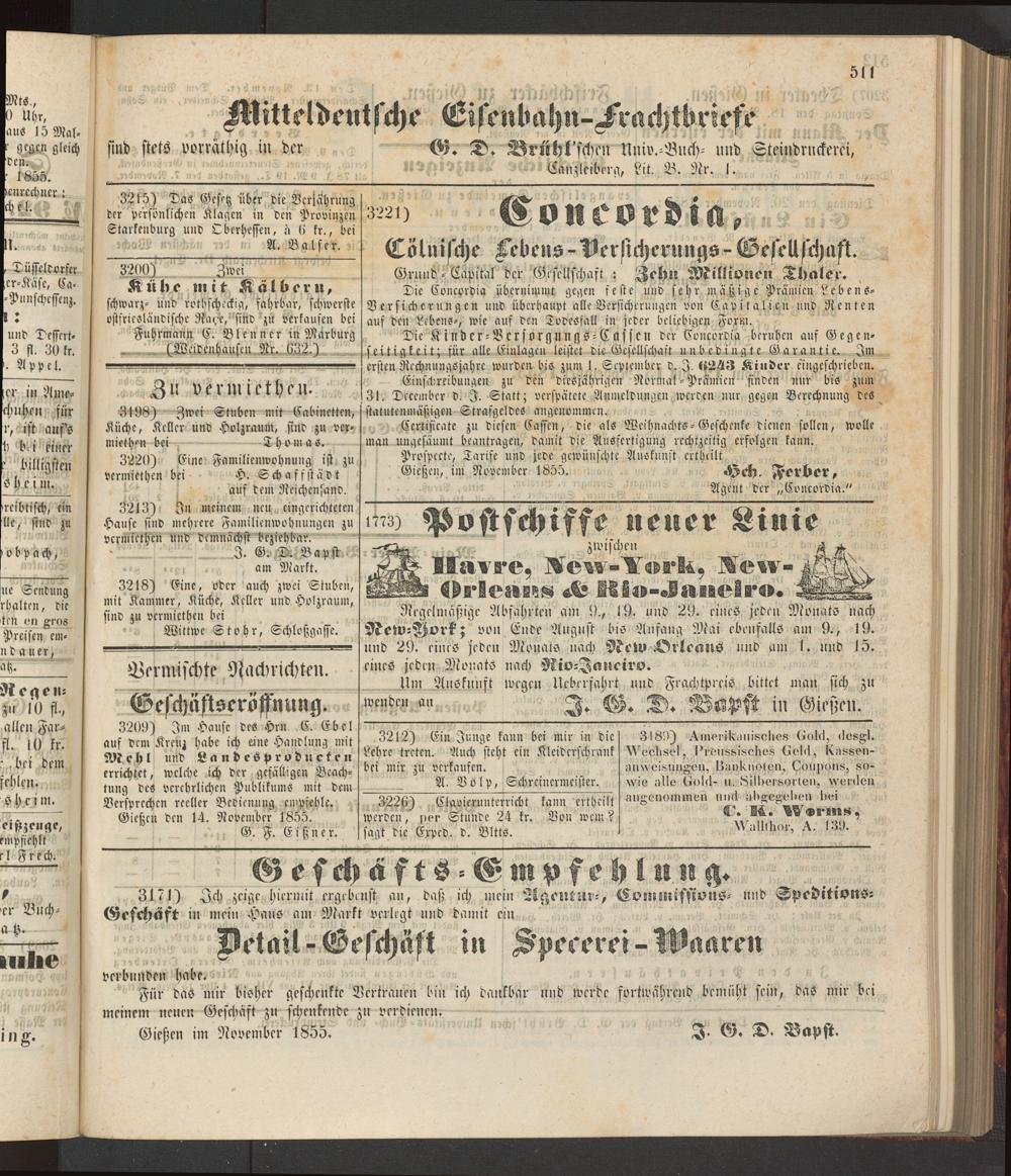 Anzeigeblatt für die Provinzialhauptstadt Gießen. 1840-1867