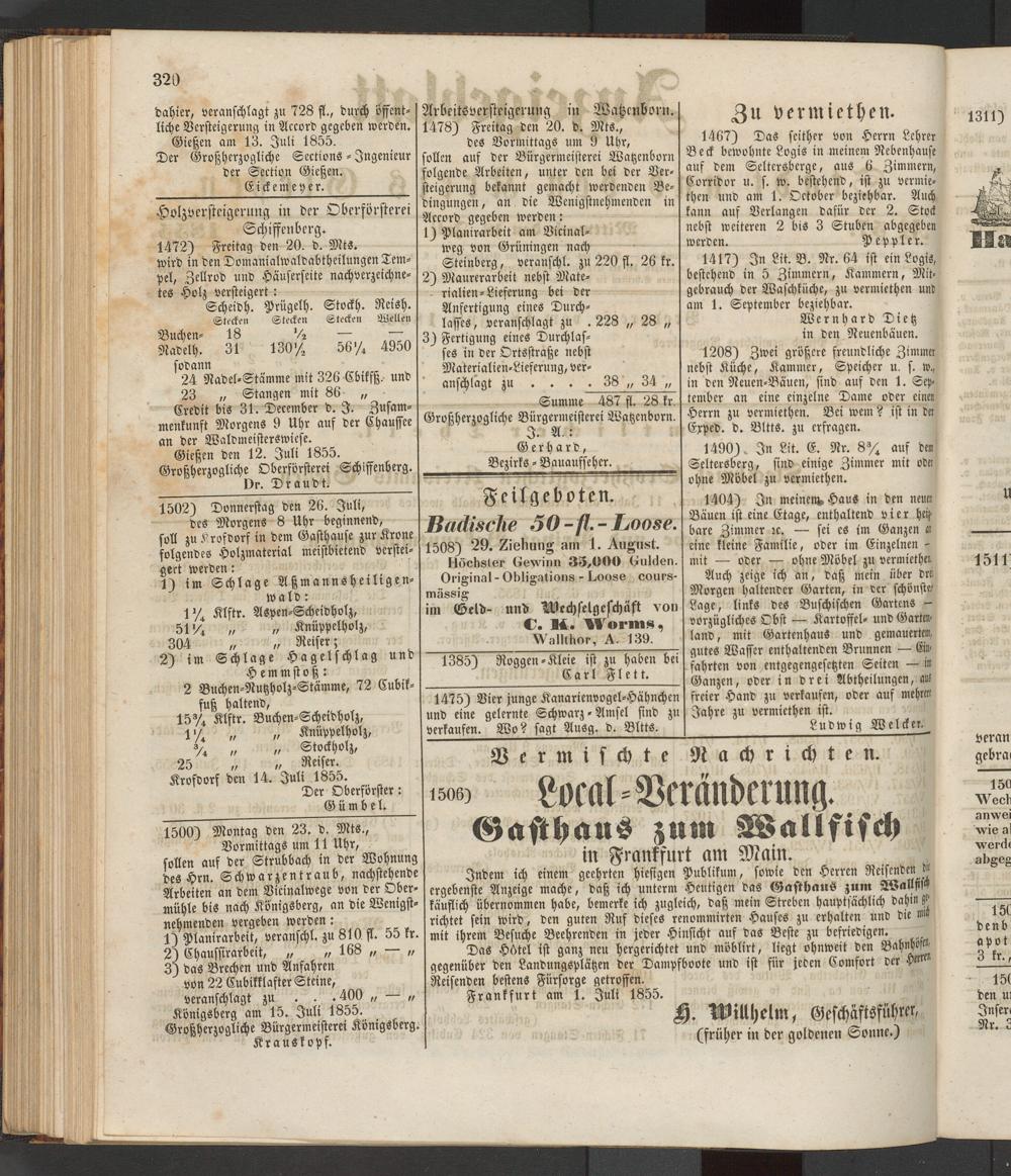 Anzeigeblatt für die Provinzialhauptstadt Gießen. 1840-1867