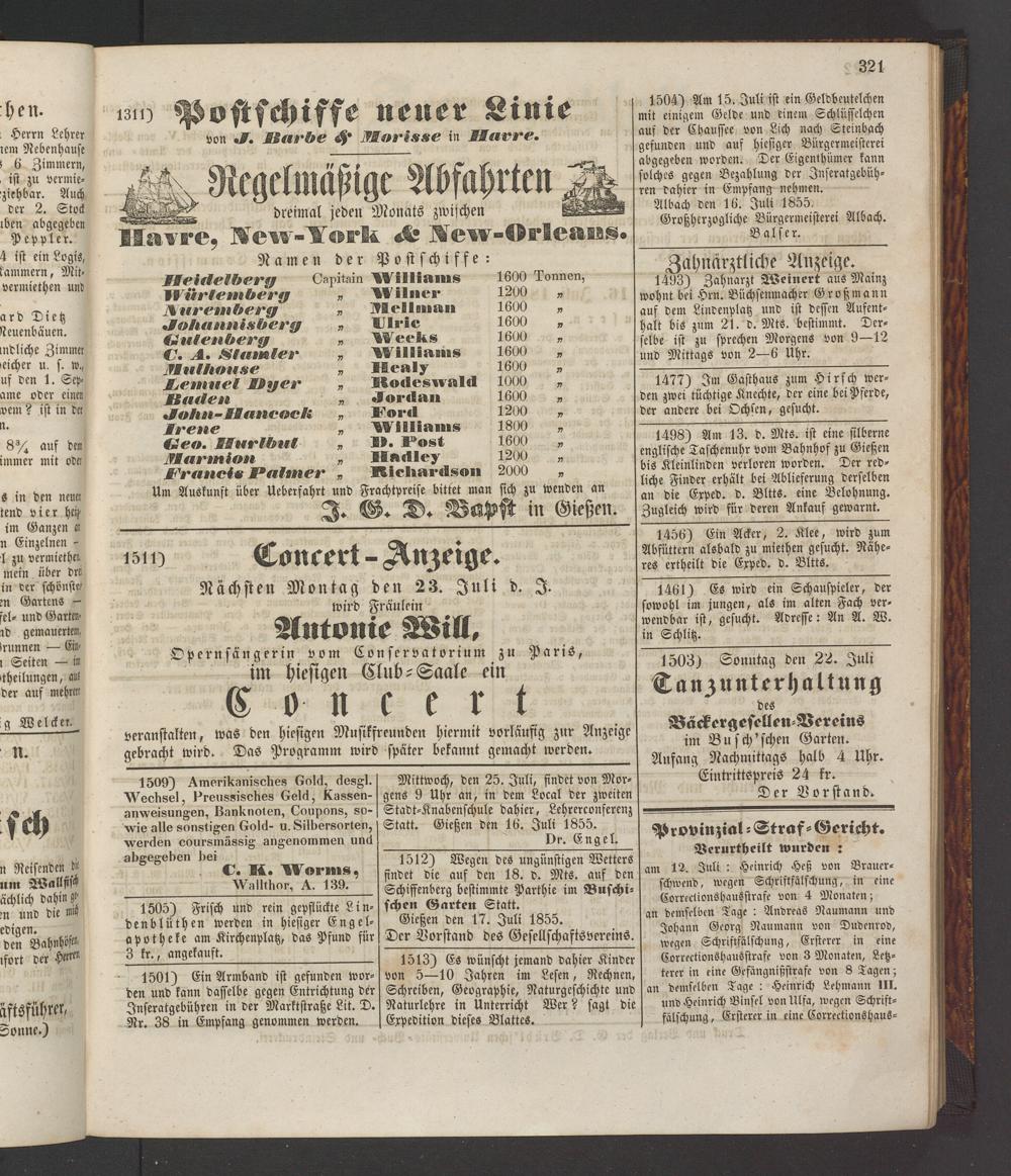 Anzeigeblatt für die Provinzialhauptstadt Gießen. 1840-1867