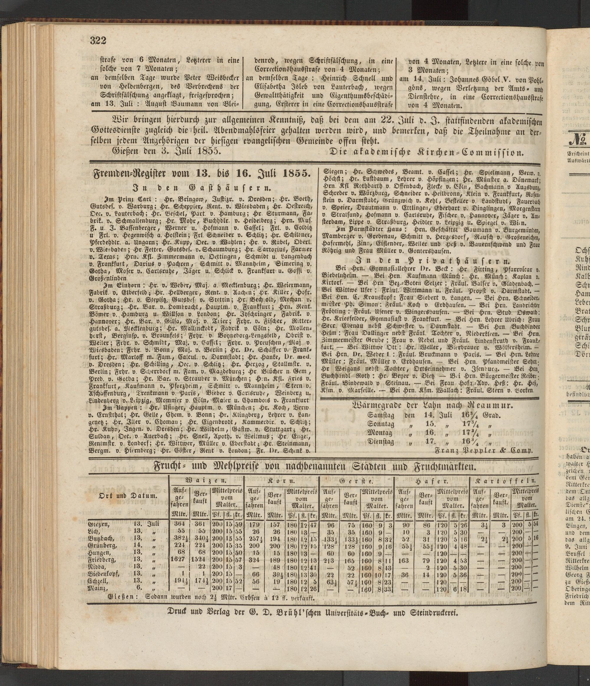 Anzeigeblatt für die Provinzialhauptstadt Gießen. 1840-1867