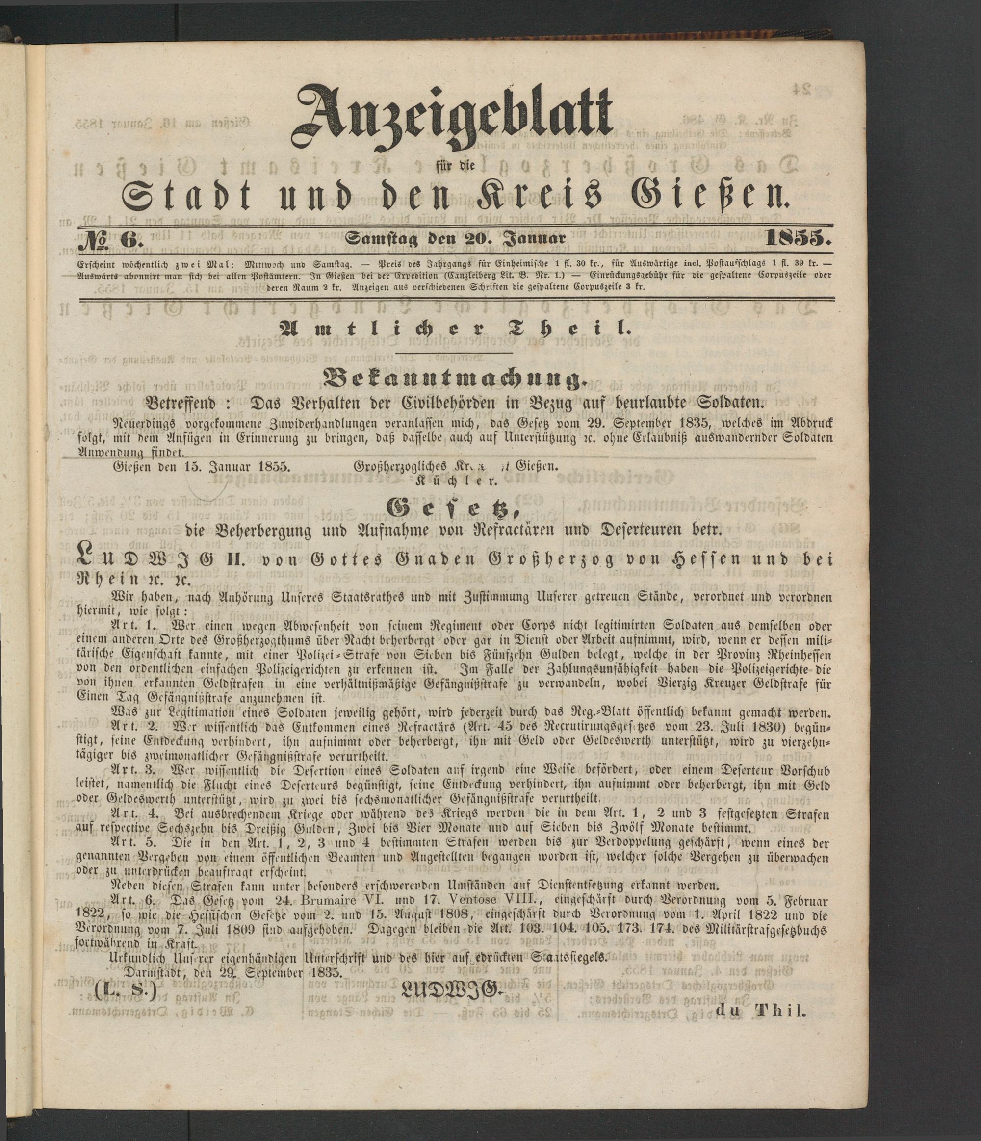 Anzeigeblatt für die Provinzialhauptstadt Gießen. 1840-1867