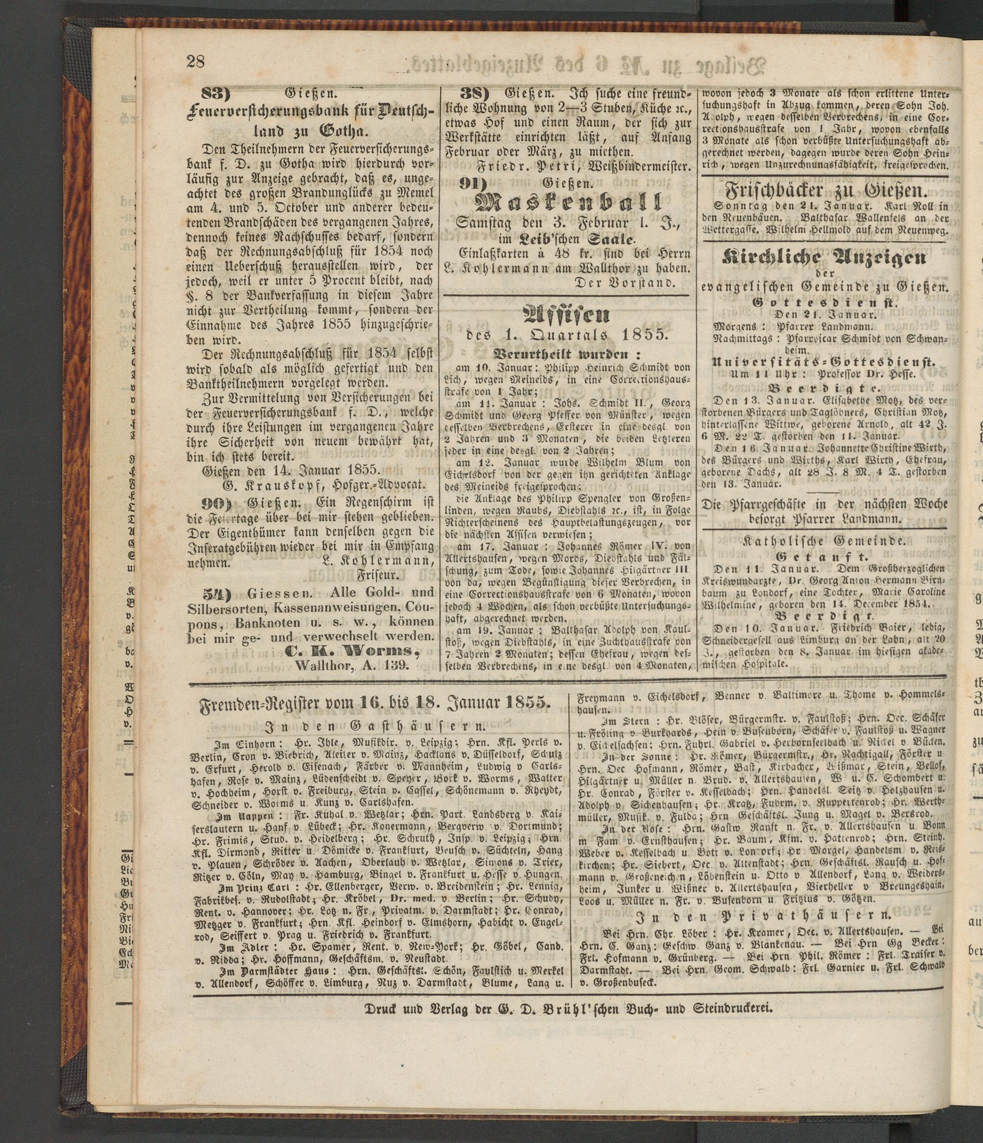 Anzeigeblatt für die Provinzialhauptstadt Gießen. 1840-1867