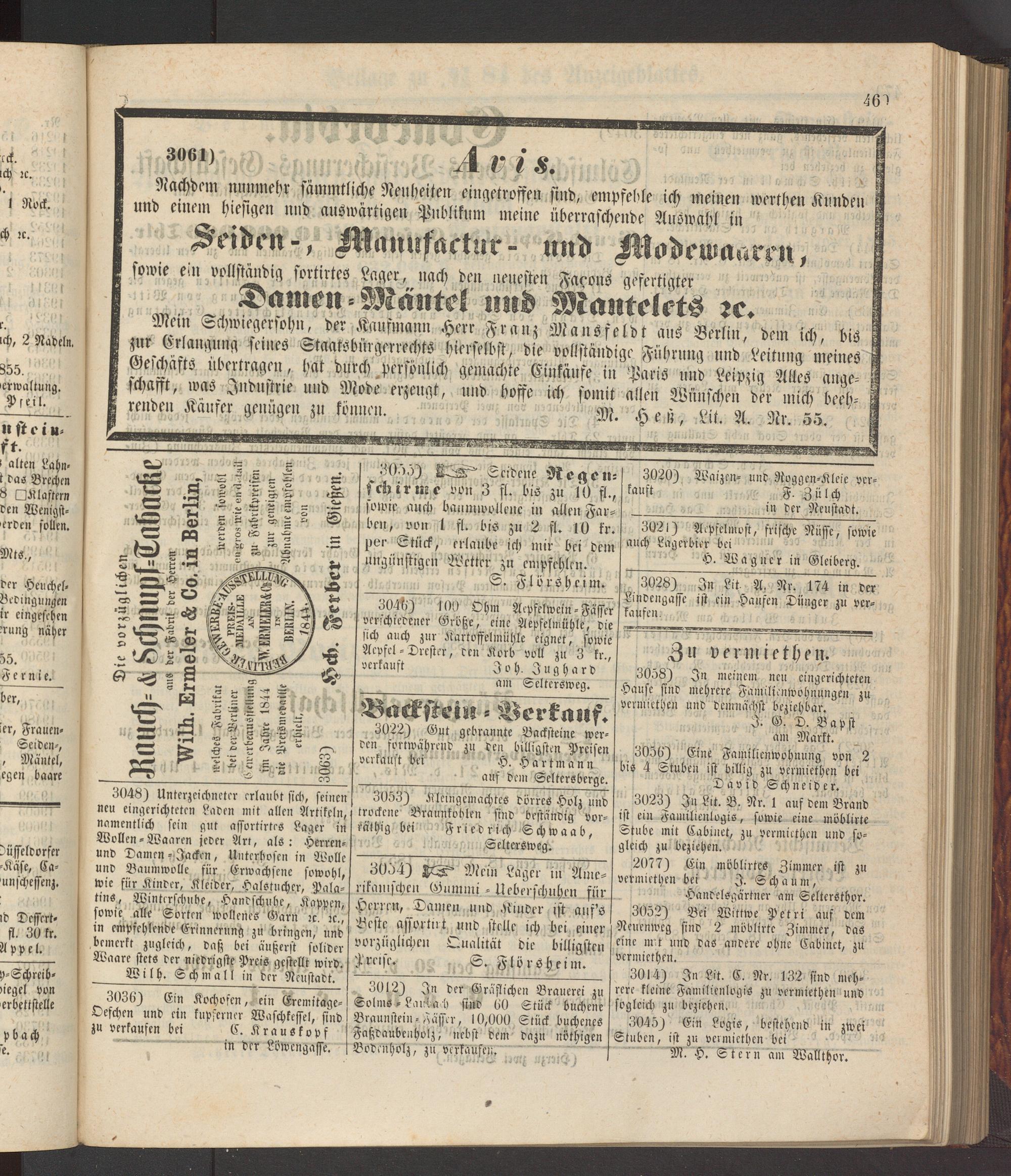 Anzeigeblatt für die Provinzialhauptstadt Gießen. 1840-1867