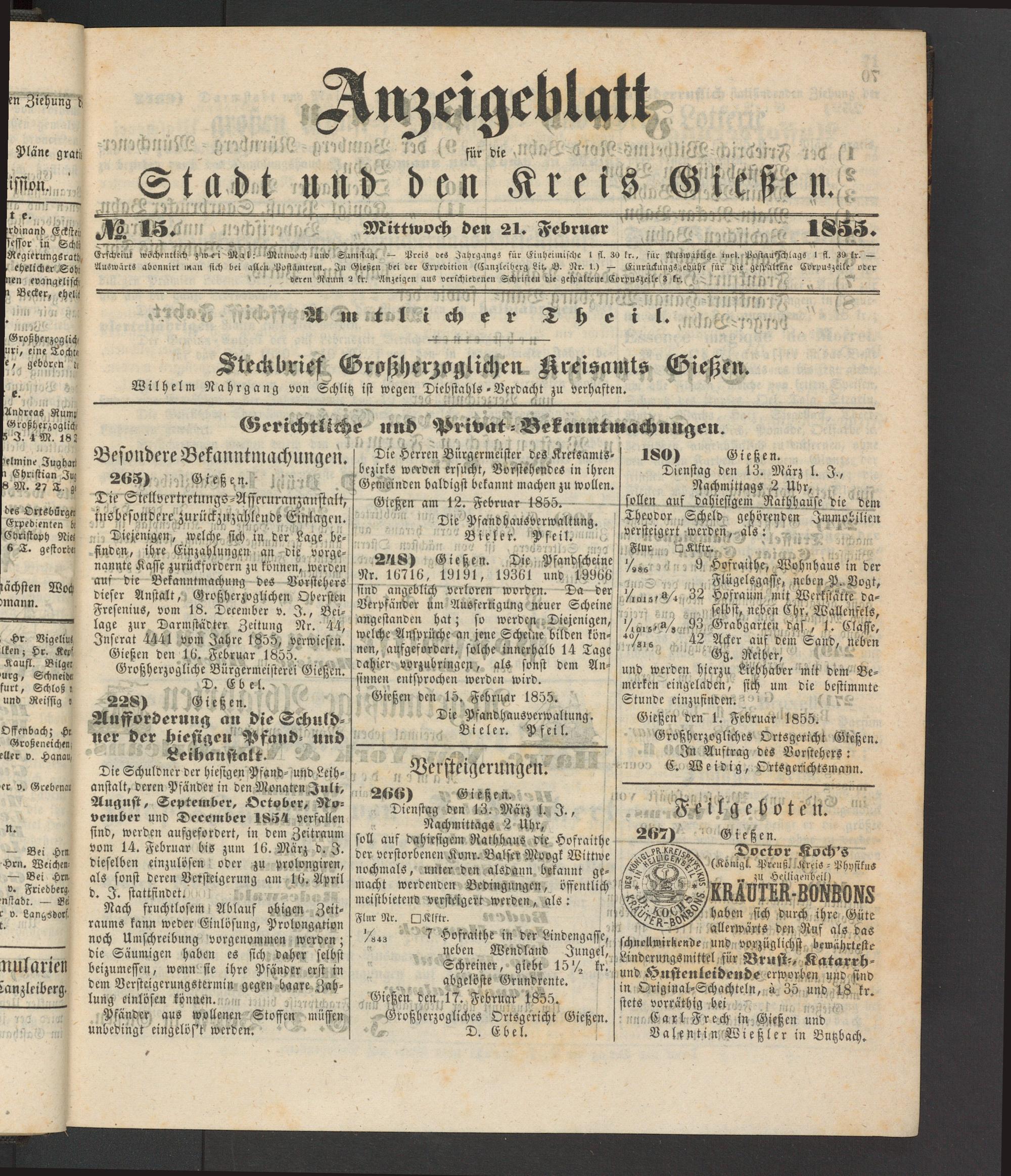 Anzeigeblatt für die Provinzialhauptstadt Gießen. 1840-1867