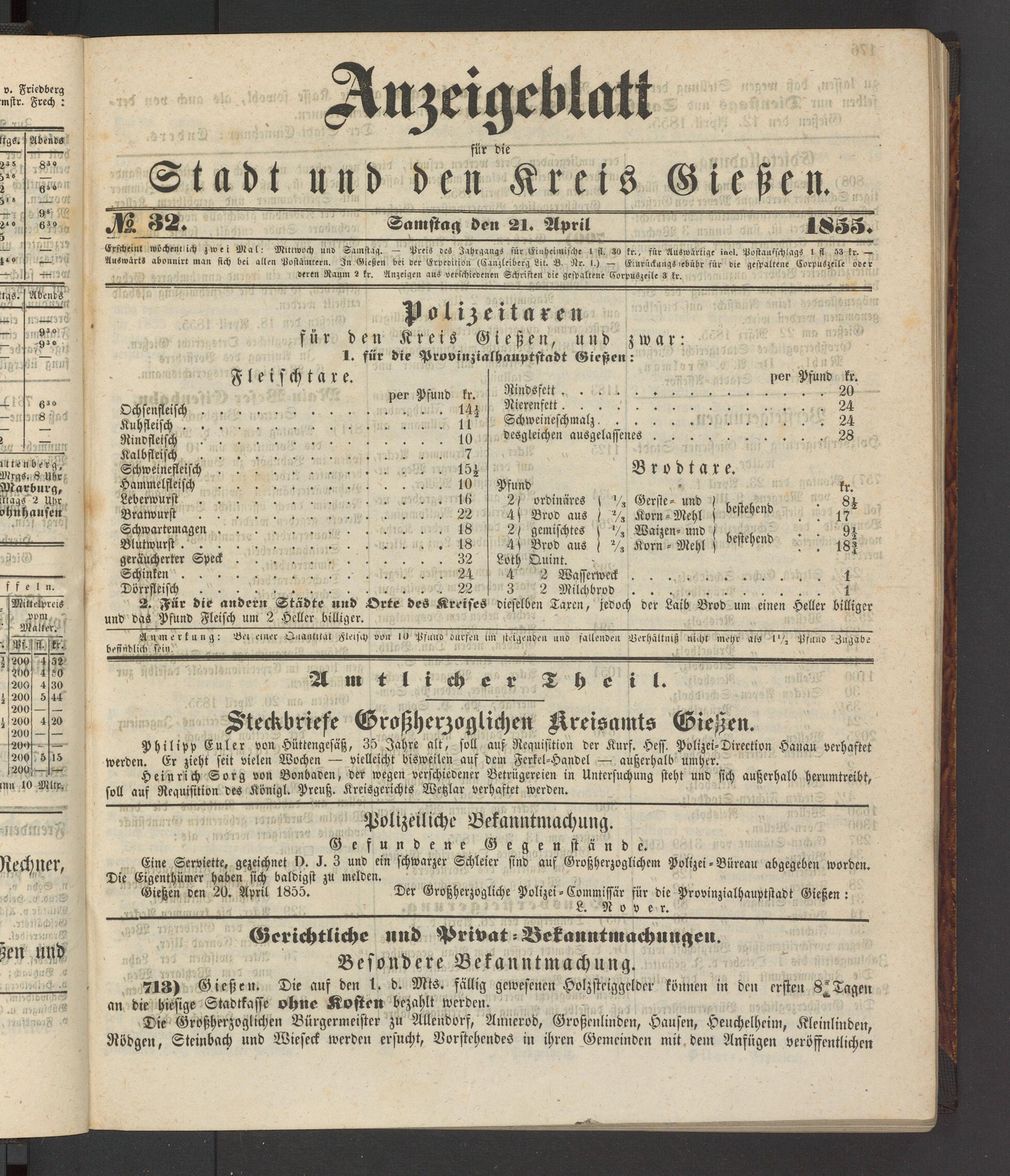 Anzeigeblatt für die Provinzialhauptstadt Gießen. 1840-1867