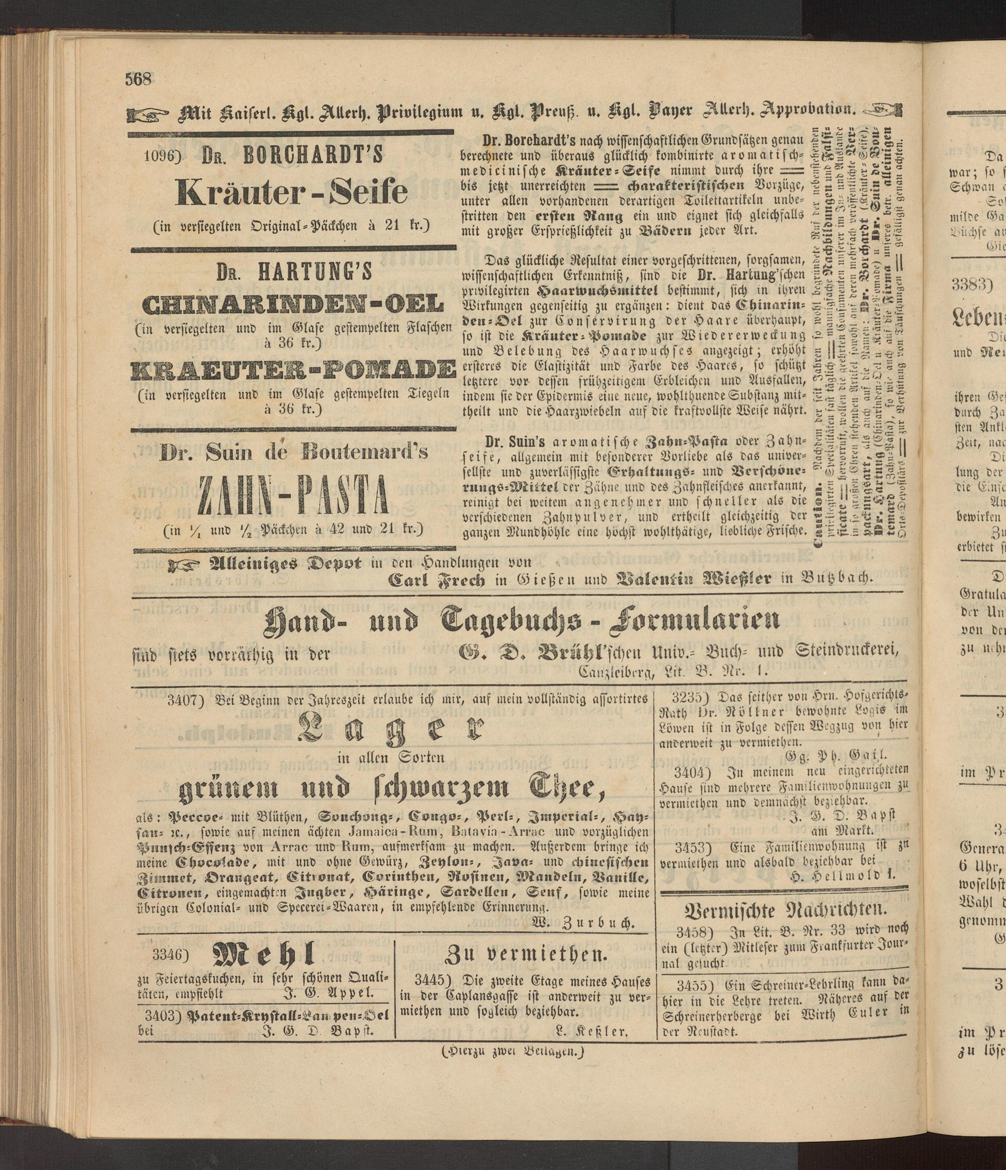 Anzeigeblatt für die Provinzialhauptstadt Gießen. 1840-1867
