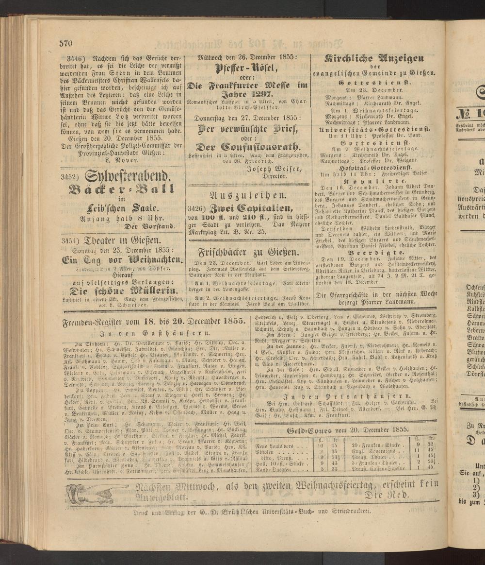 Anzeigeblatt für die Provinzialhauptstadt Gießen. 1840-1867