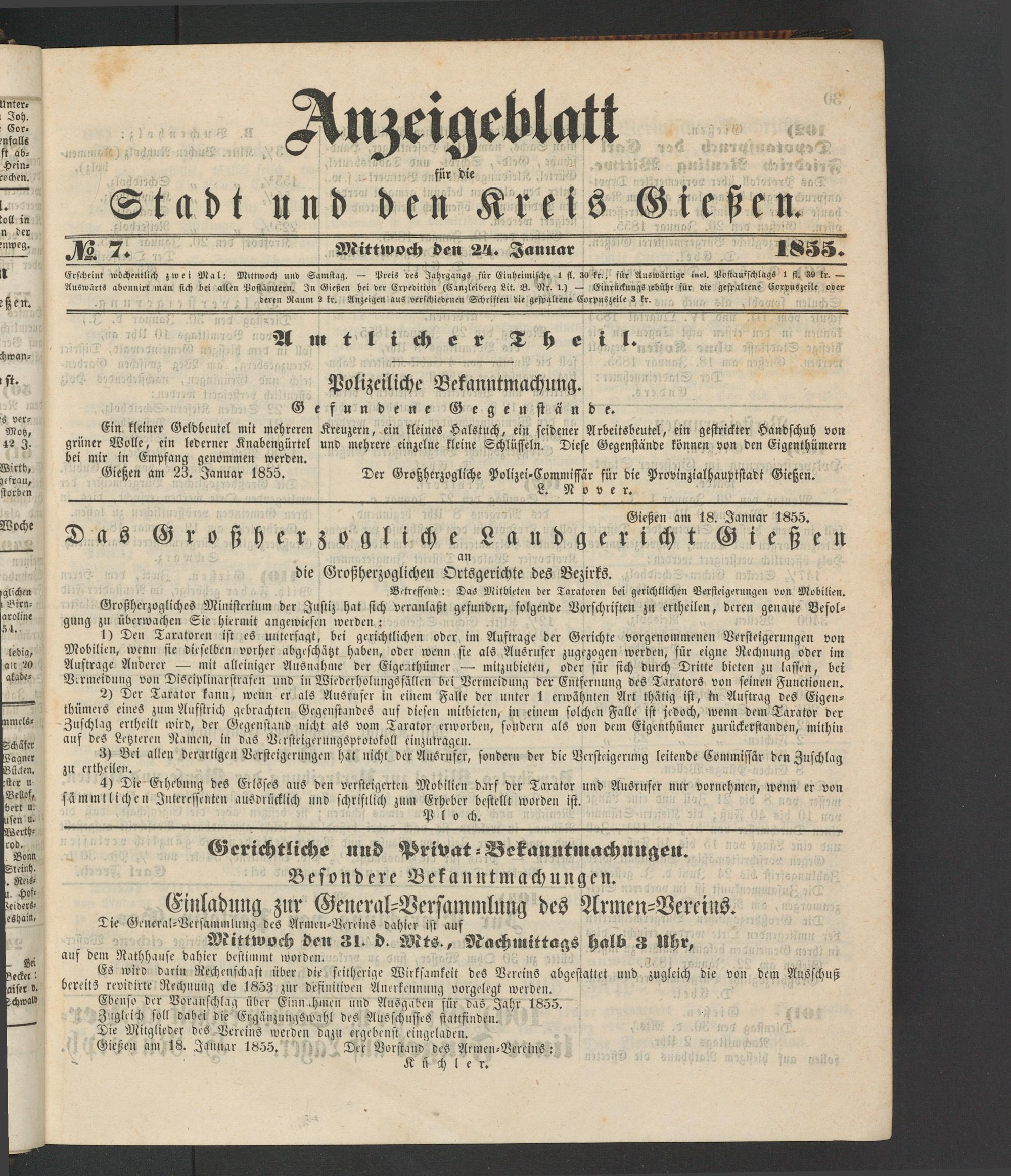 Anzeigeblatt für die Provinzialhauptstadt Gießen. 1840-1867