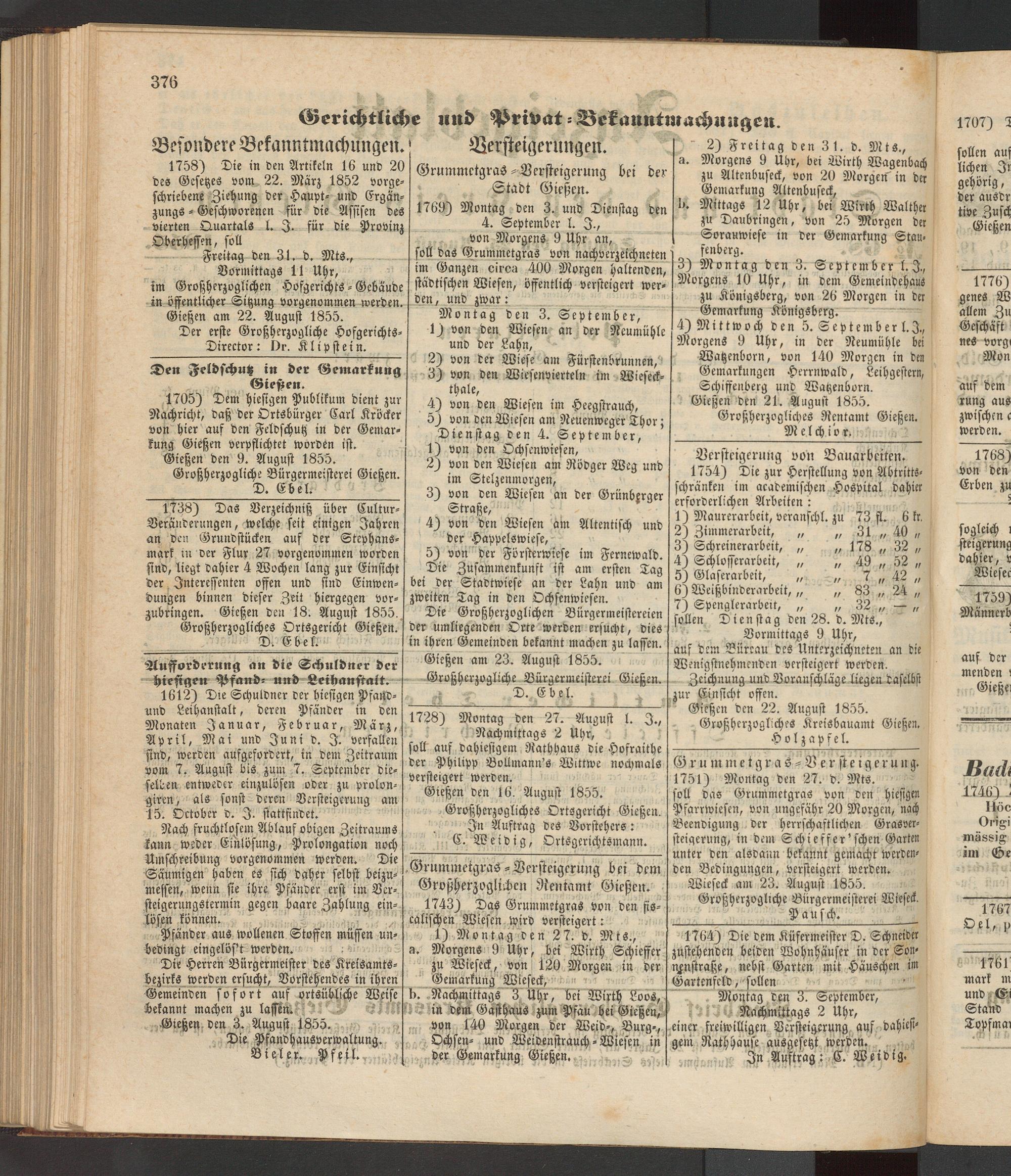 Anzeigeblatt für die Provinzialhauptstadt Gießen. 1840-1867
