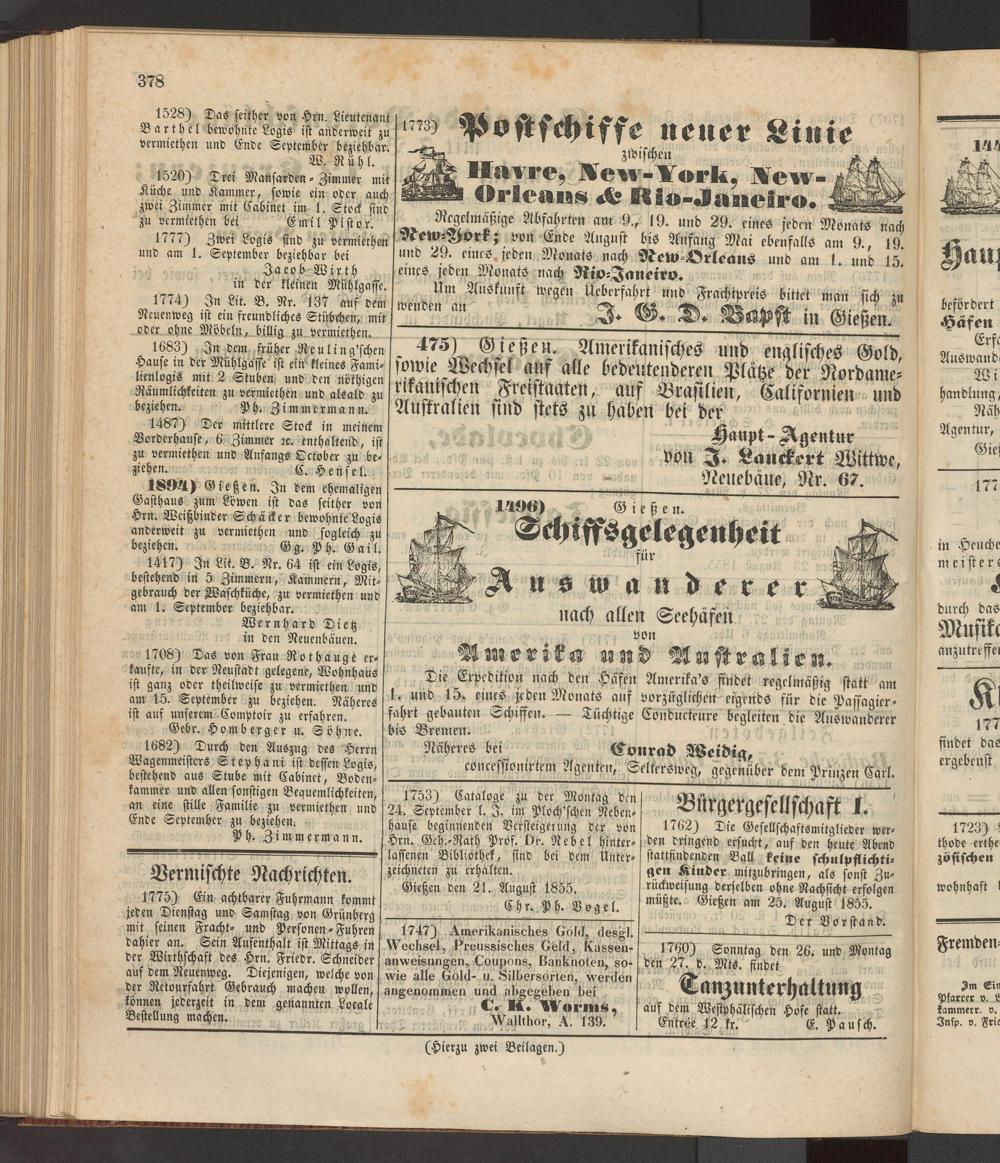 Anzeigeblatt für die Provinzialhauptstadt Gießen. 1840-1867