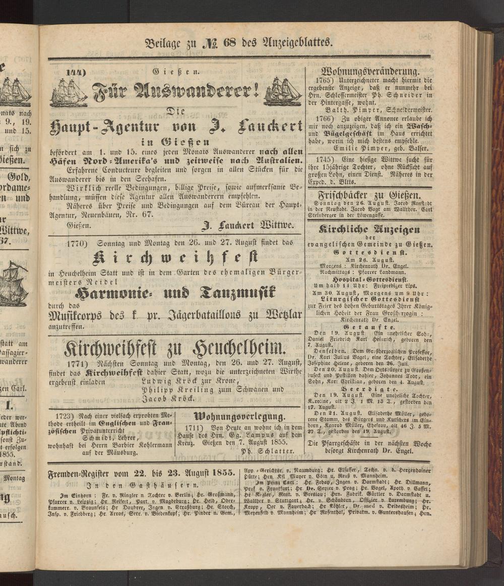 Anzeigeblatt für die Provinzialhauptstadt Gießen. 1840-1867
