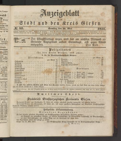 Anzeigeblatt für die Provinzialhauptstadt Gießen. 1840-1867