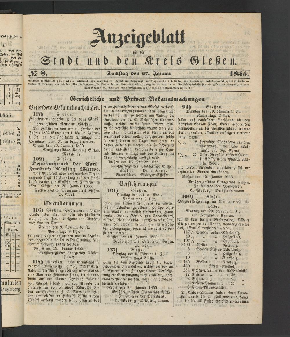 Anzeigeblatt für die Provinzialhauptstadt Gießen. 1840-1867