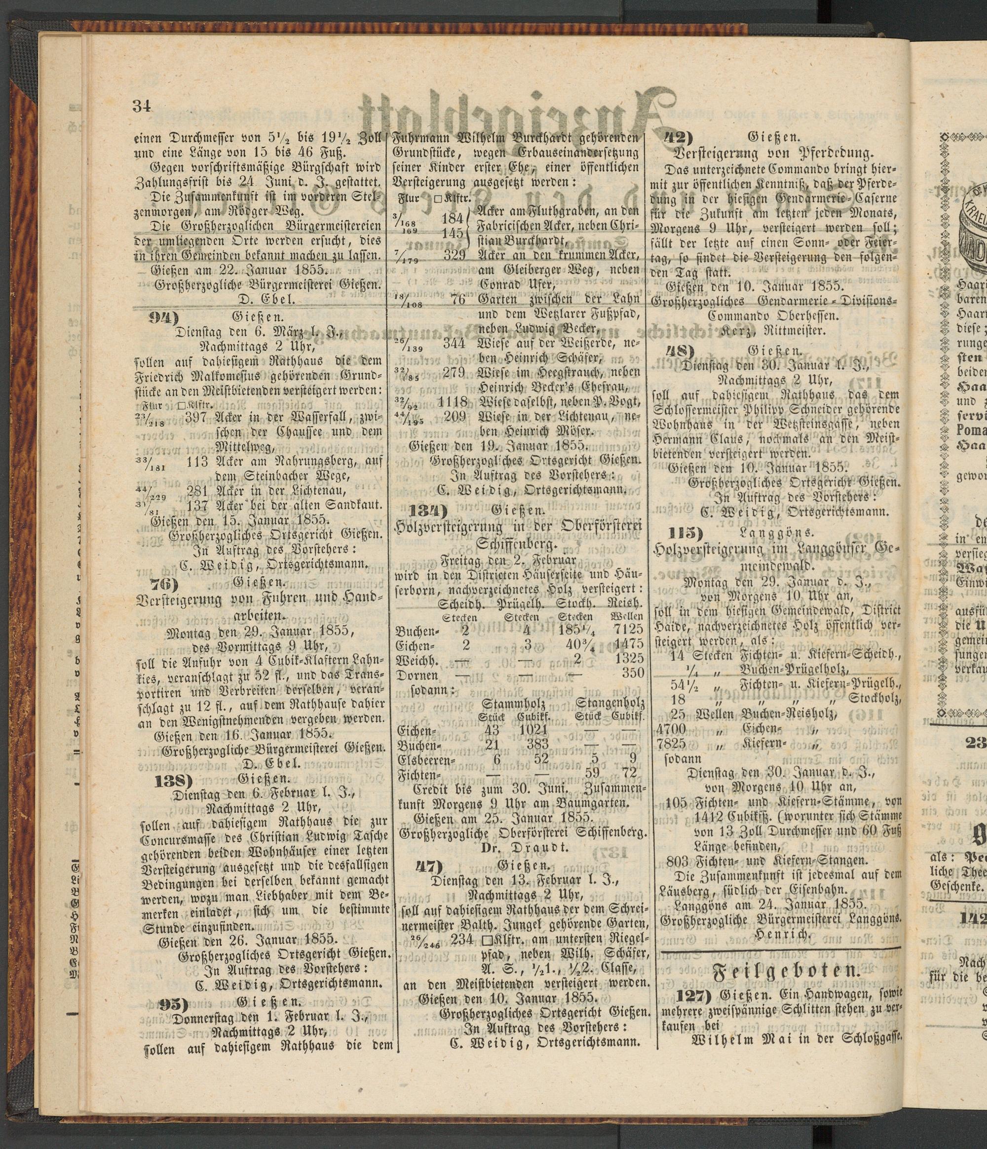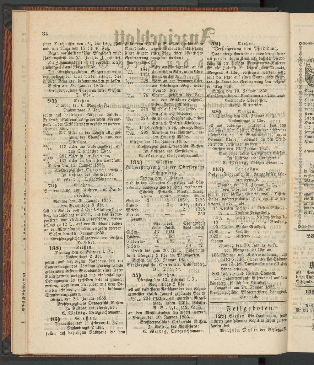 Anzeigeblatt für die Provinzialhauptstadt Gießen. 1840-1867