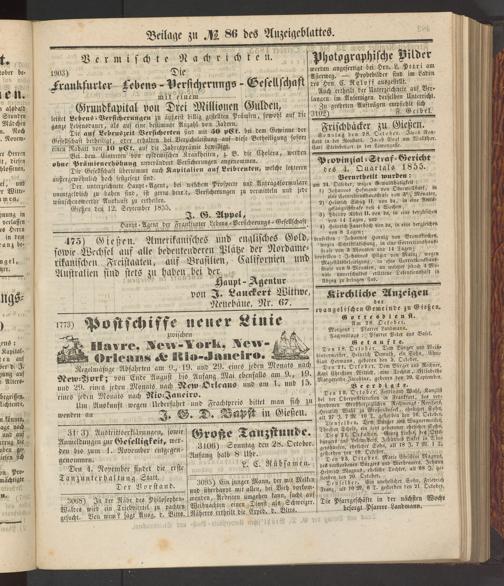 Anzeigeblatt für die Provinzialhauptstadt Gießen. 1840-1867