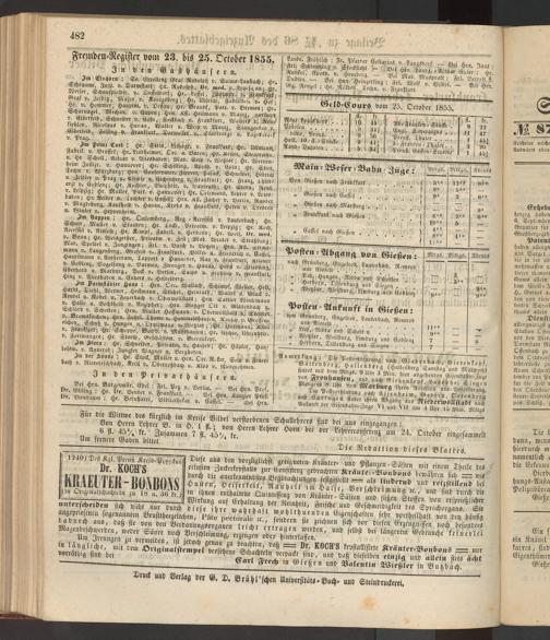 Anzeigeblatt für die Provinzialhauptstadt Gießen. 1840-1867