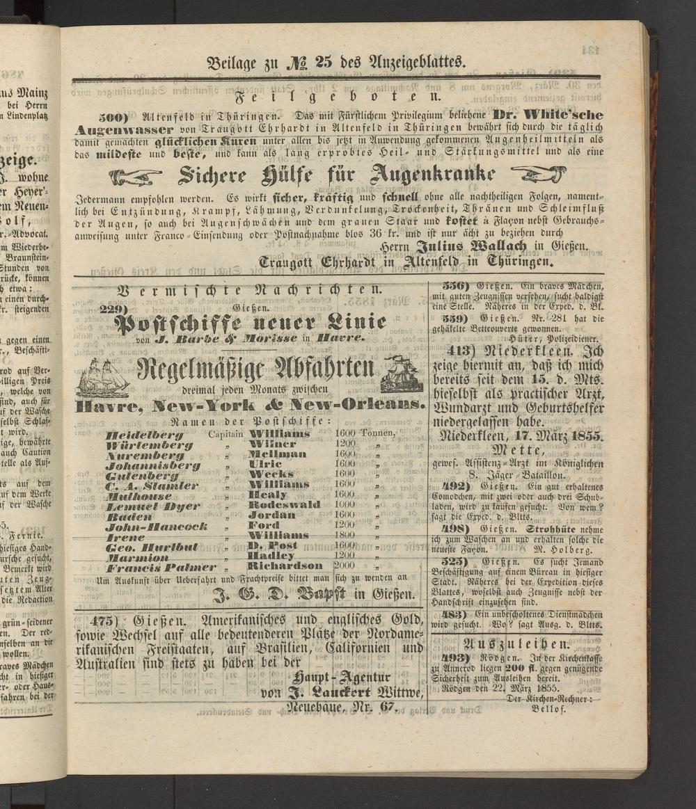 Anzeigeblatt für die Provinzialhauptstadt Gießen. 1840-1867
