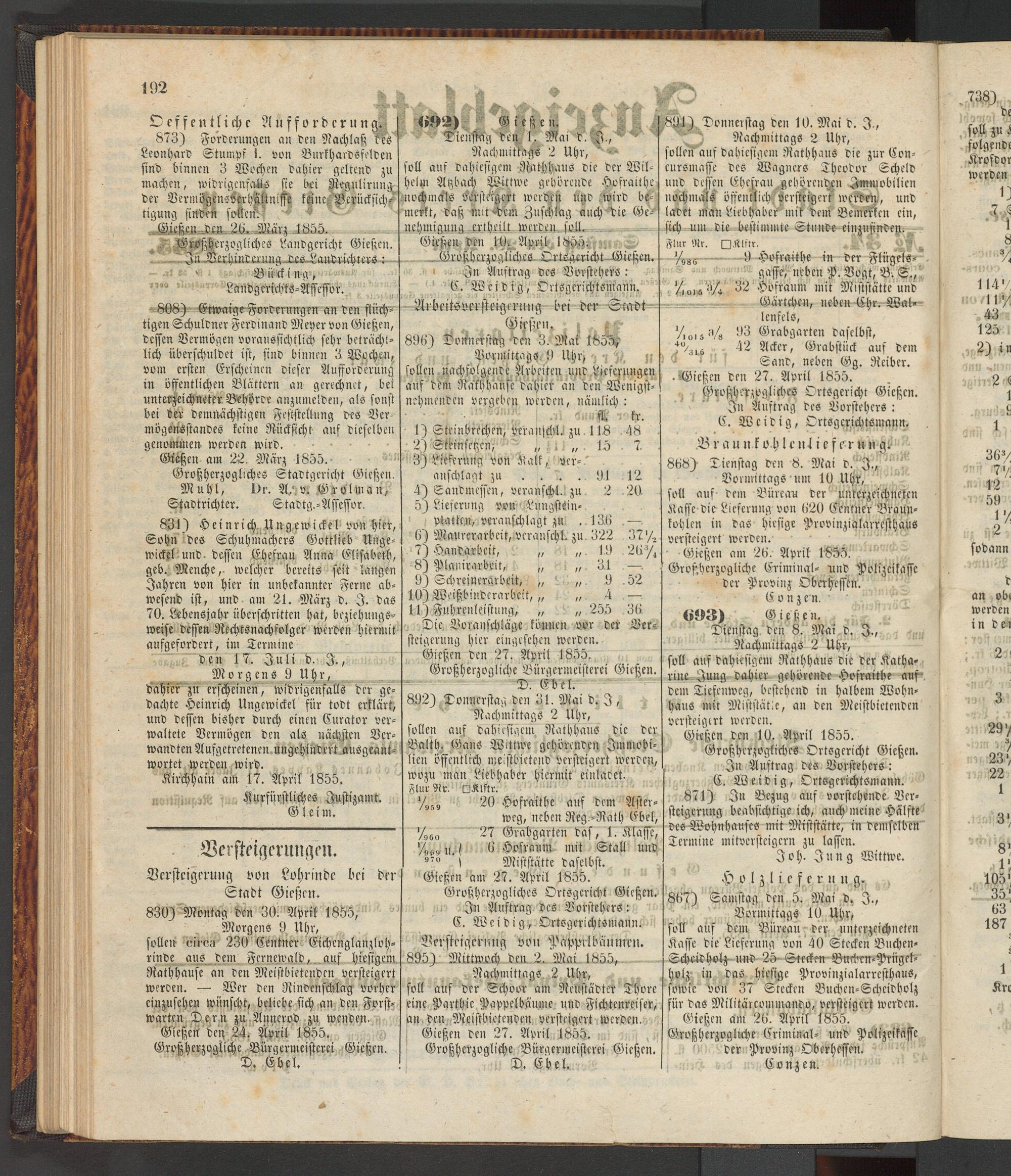 Anzeigeblatt für die Provinzialhauptstadt Gießen. 1840-1867