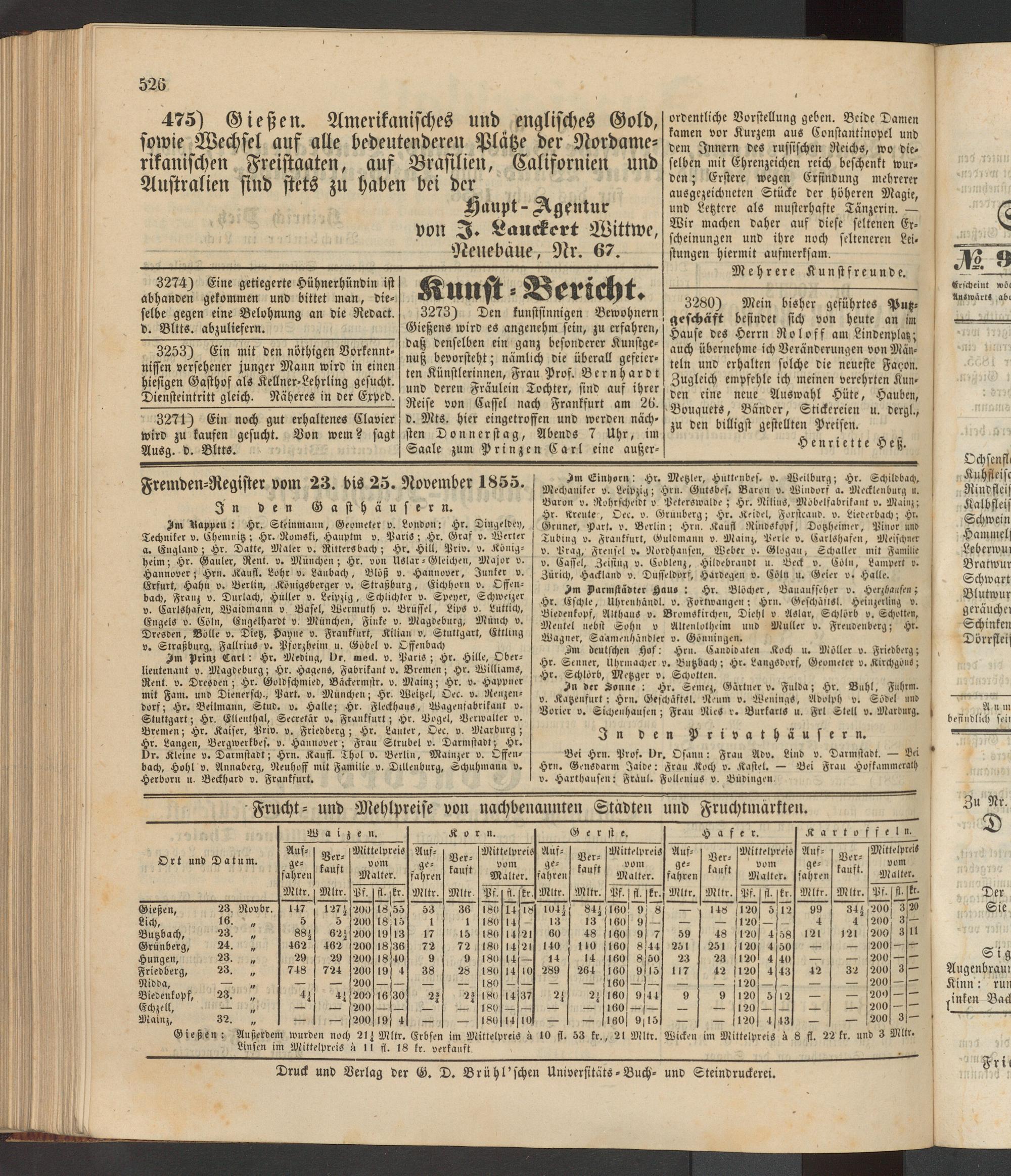 Anzeigeblatt für die Provinzialhauptstadt Gießen. 1840-1867
