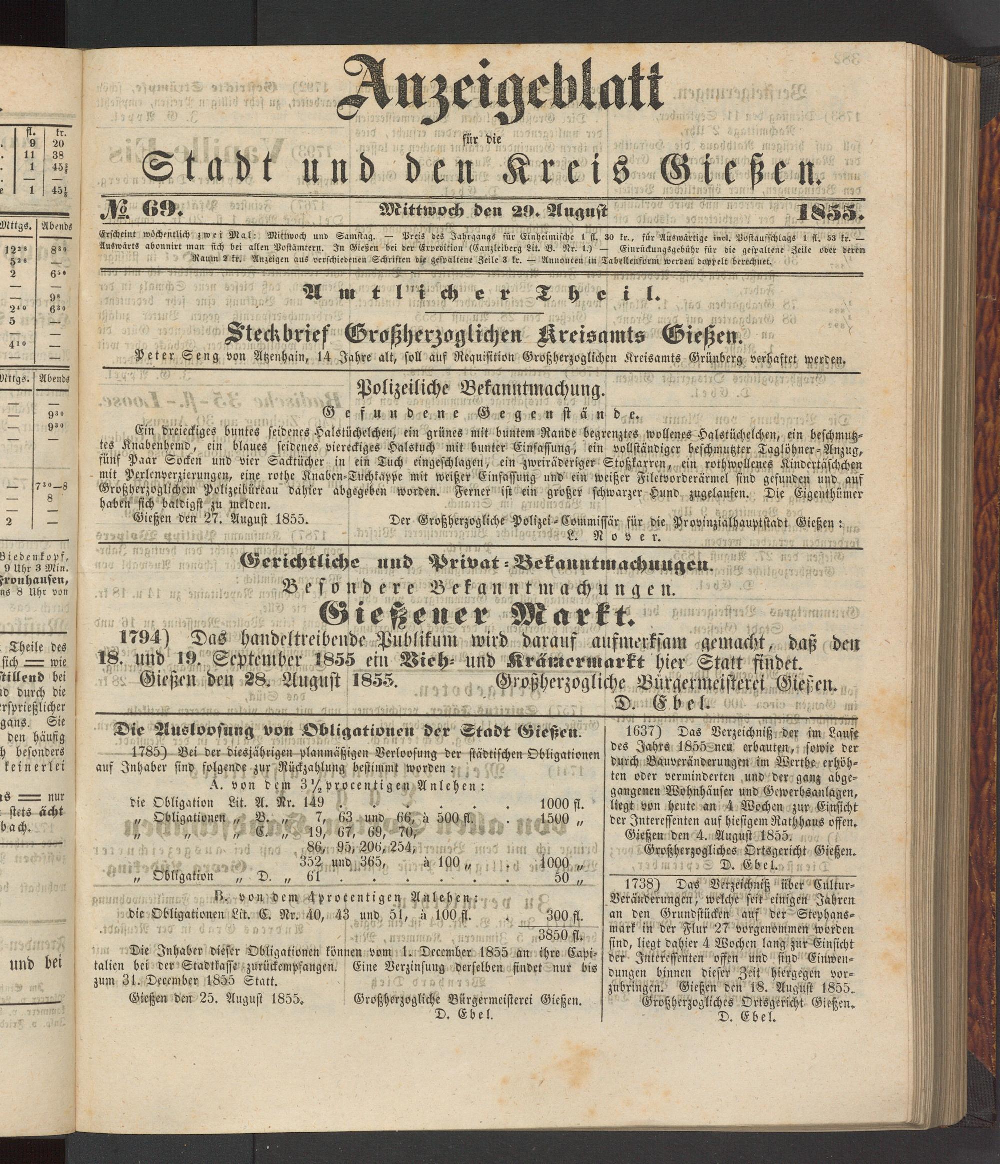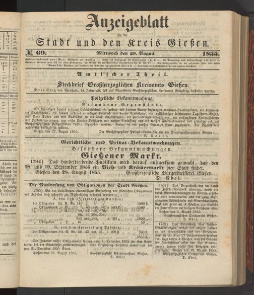 Anzeigeblatt für die Provinzialhauptstadt Gießen. 1840-1867