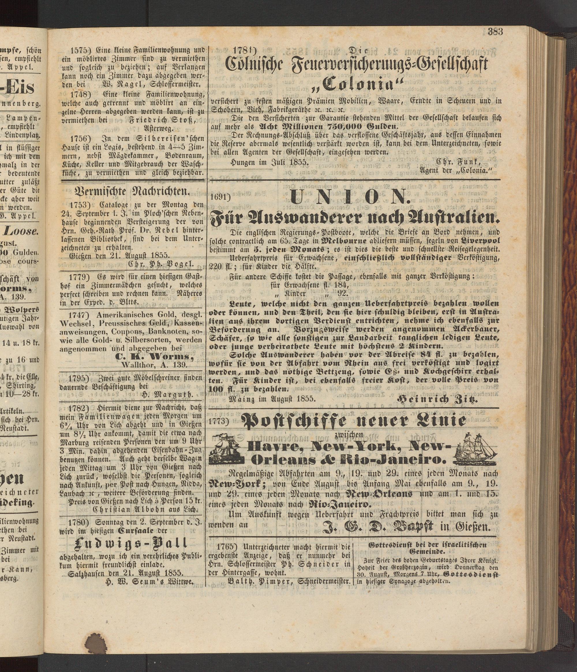 Anzeigeblatt für die Provinzialhauptstadt Gießen. 1840-1867